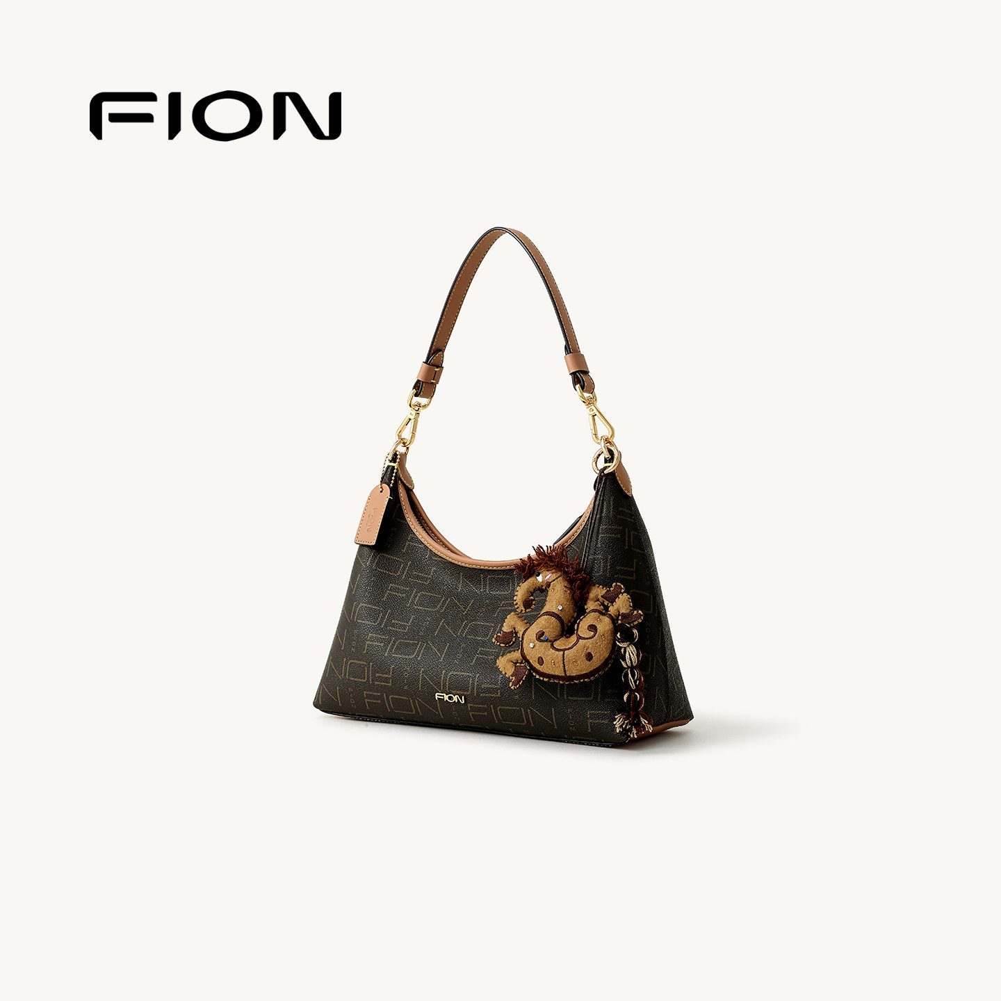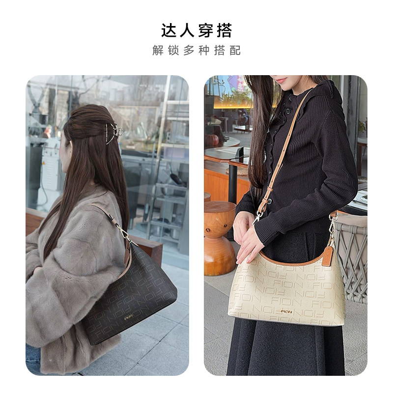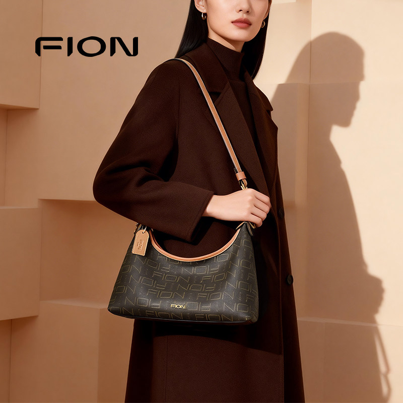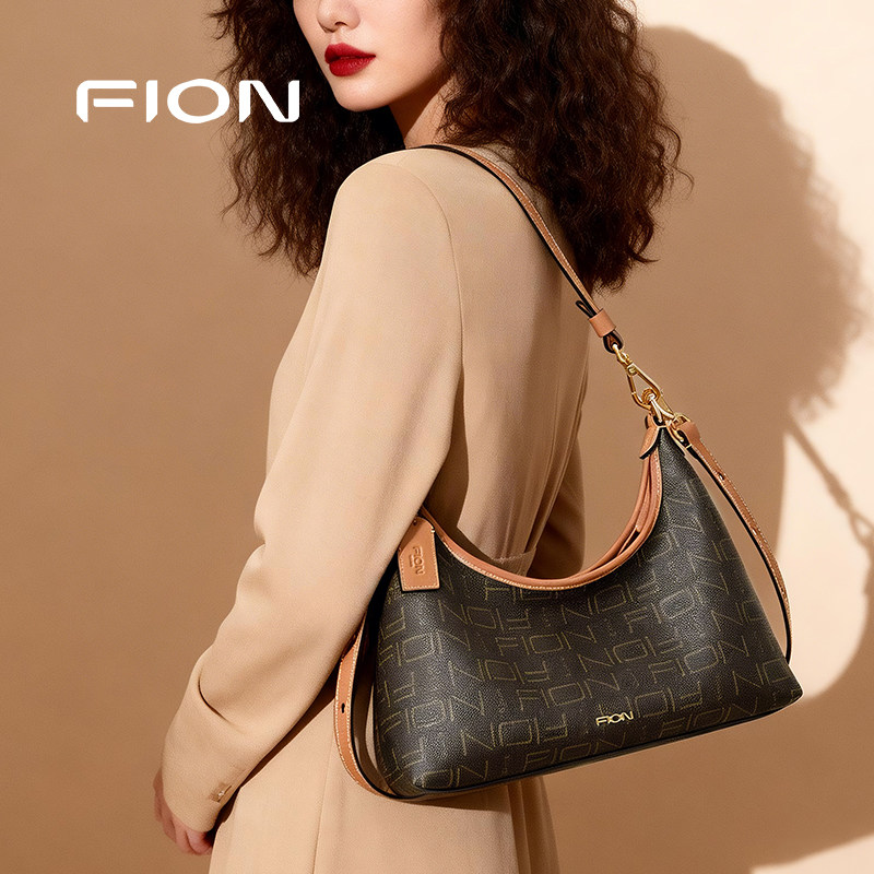 Fion/菲安妮女包老花腋下包复古HOBO包大容量通勤单肩斜挎托特包