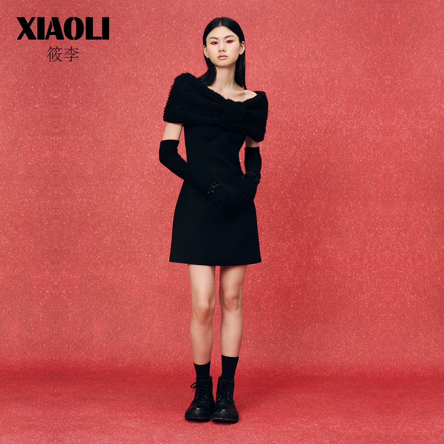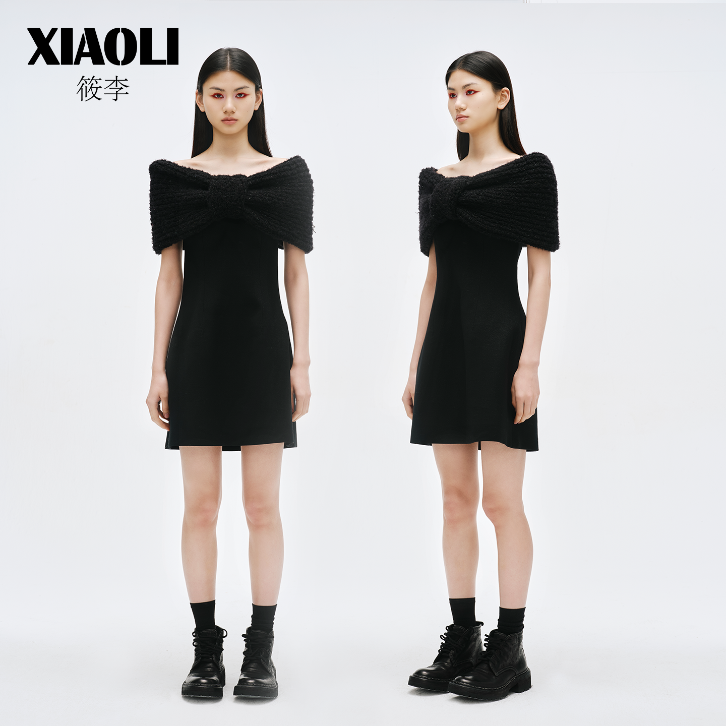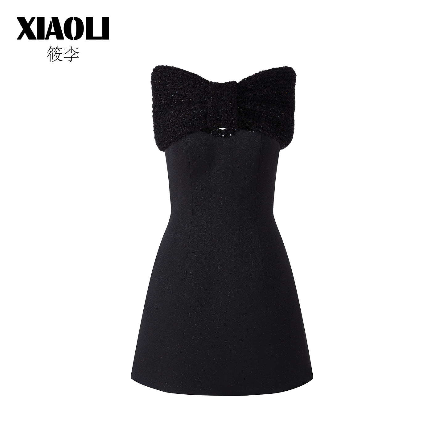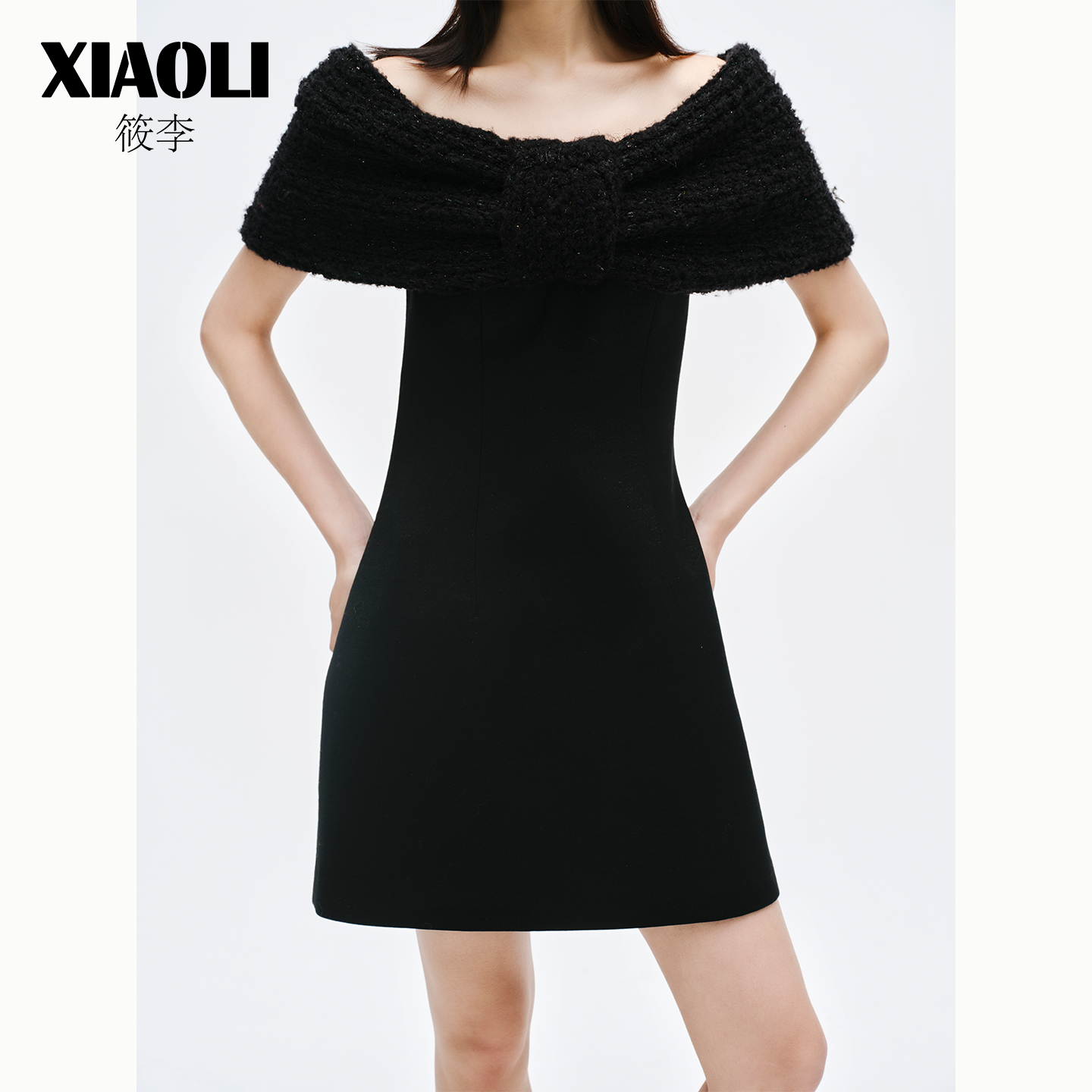 XIAOLI筱李毛织蝴蝶结披肩外搭仿抹胸气质连衣裙小黑裙晚礼服