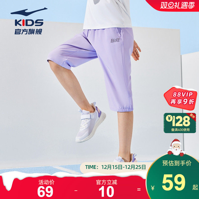 鸿星尔克童装儿童短裤女童七分裤夏季新款速干轻薄款透气运动裤子