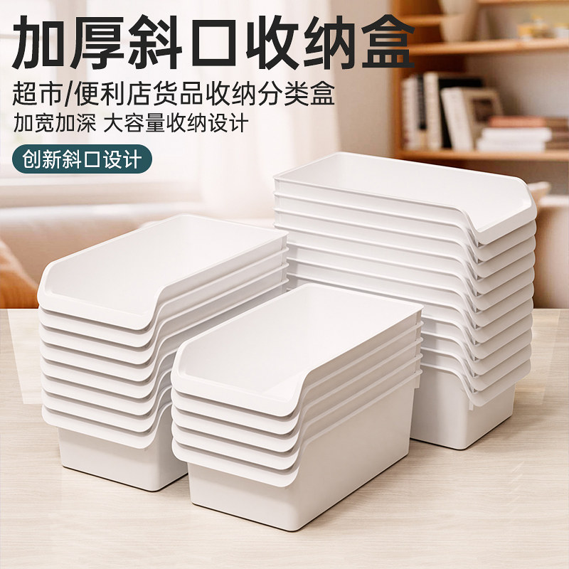 超市食品盒货架斜口收纳盒大容量零食展示盒便利店分类整理陈列盒