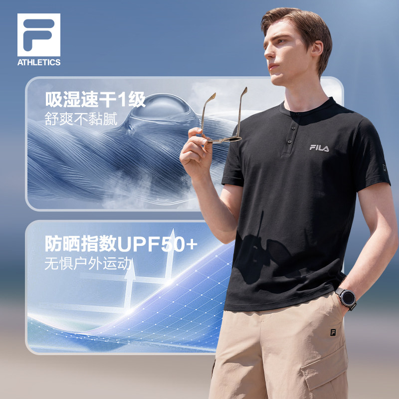 亨利领FILA斐乐速干短袖T恤2026年夏新款透气防晒运动健身上衣男