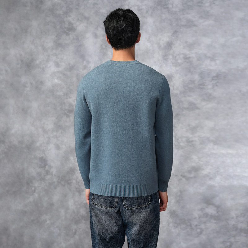 HLA/海澜之家山不在高宽松针织衫24秋冬新文字刺绣圆领保暖毛衣男