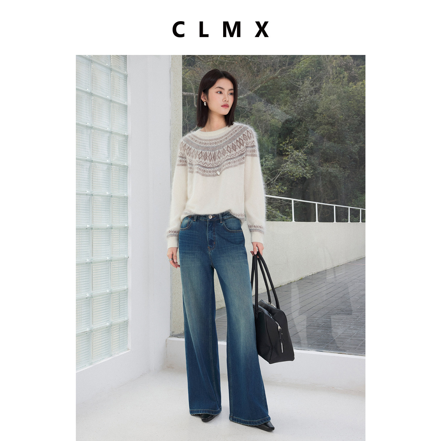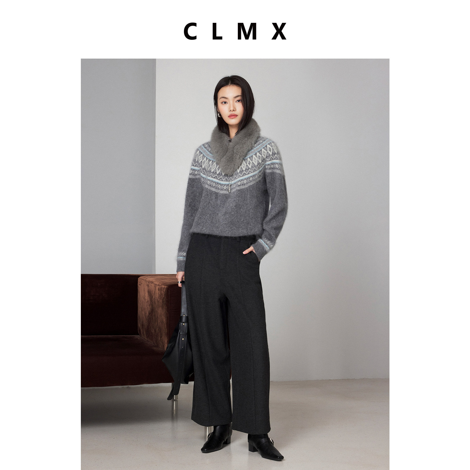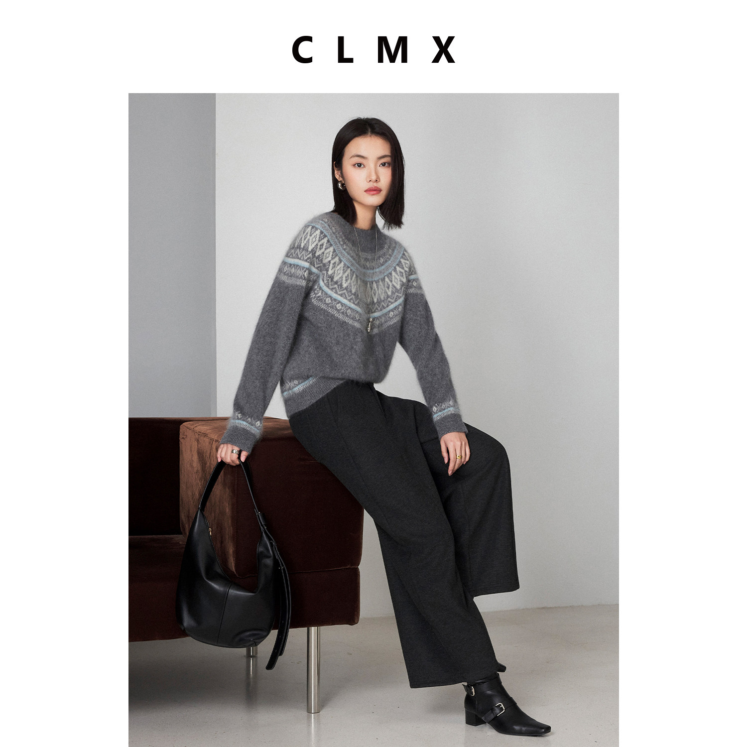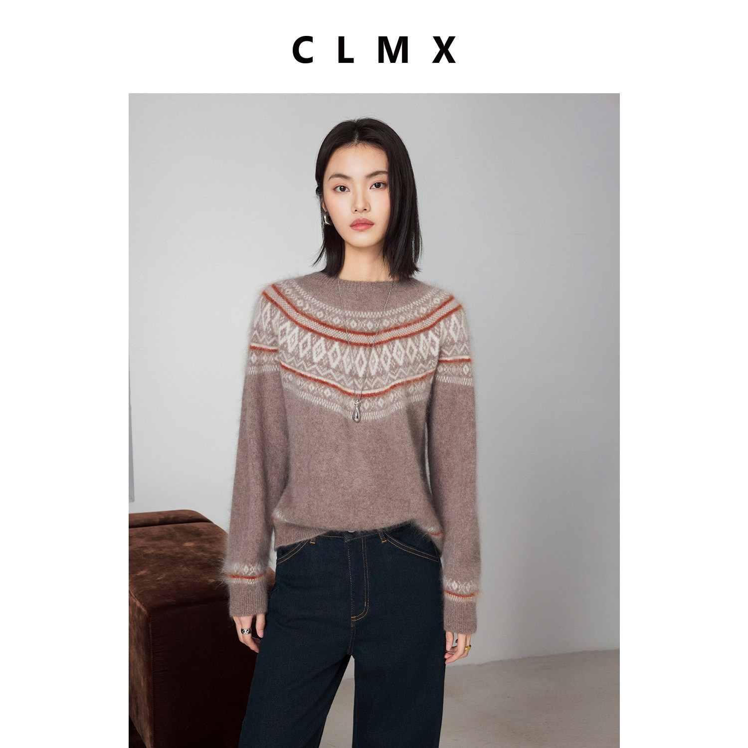 CLMX拉绒工艺18支绵羊毛纱线针织衫微宽松版型费尔岛提花圆领毛衣