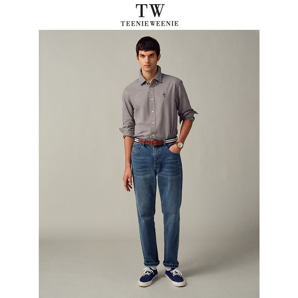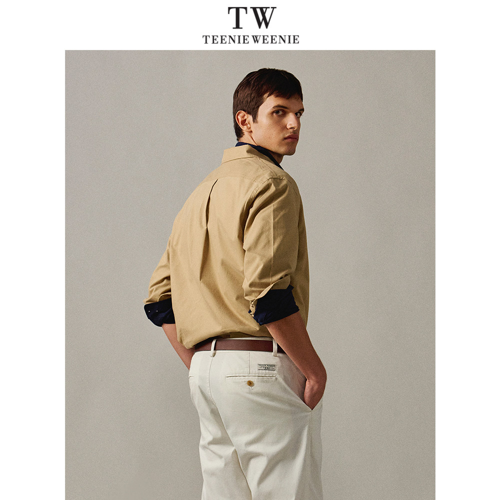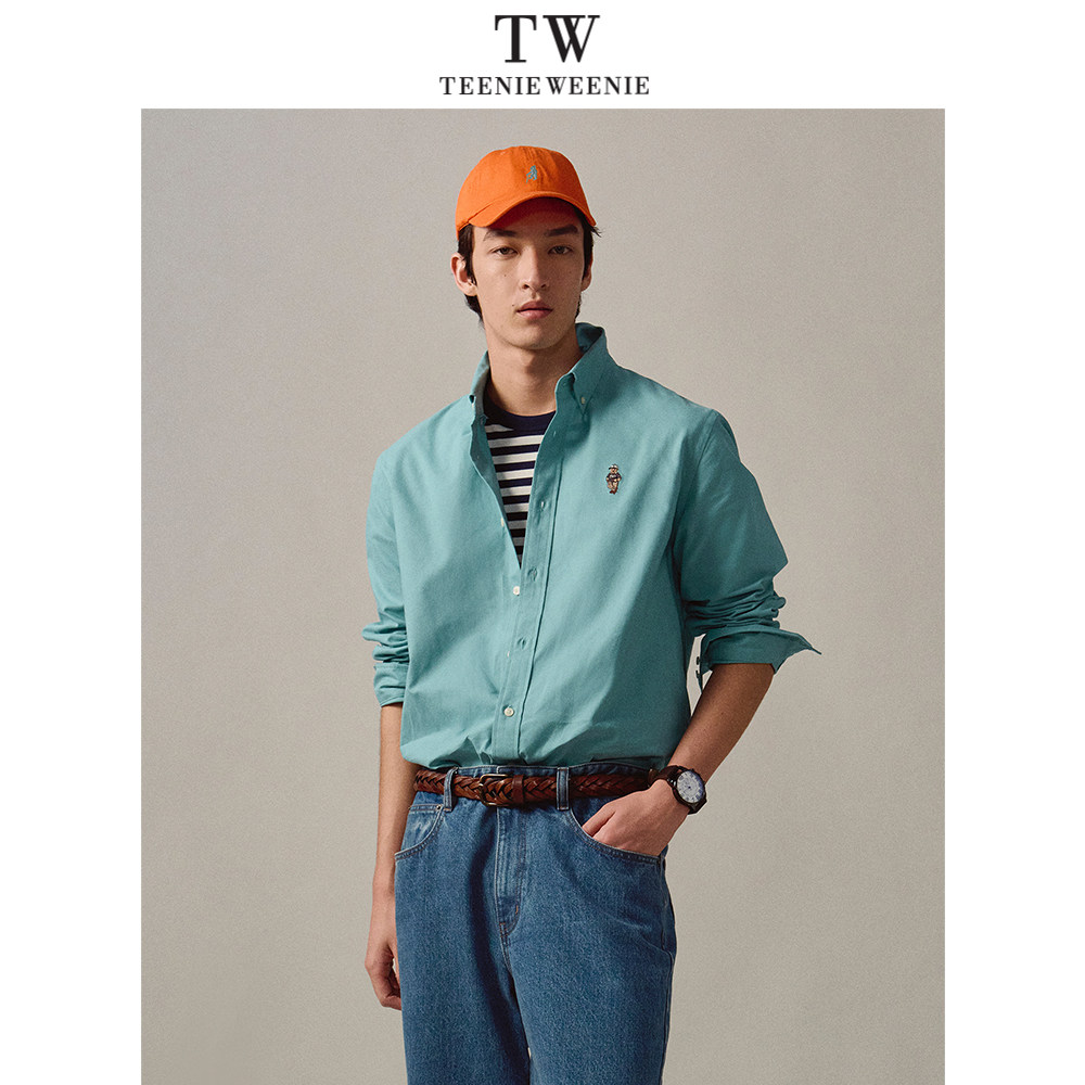 Teenie Weenie小熊男装美式休闲通勤纯色舒适长袖衬衫2026年春