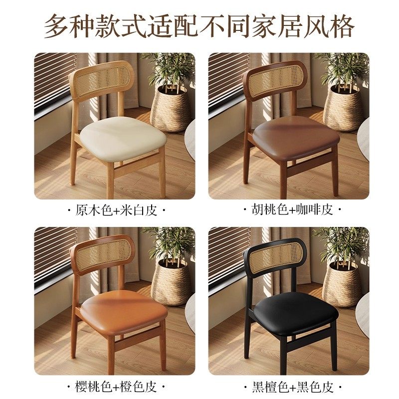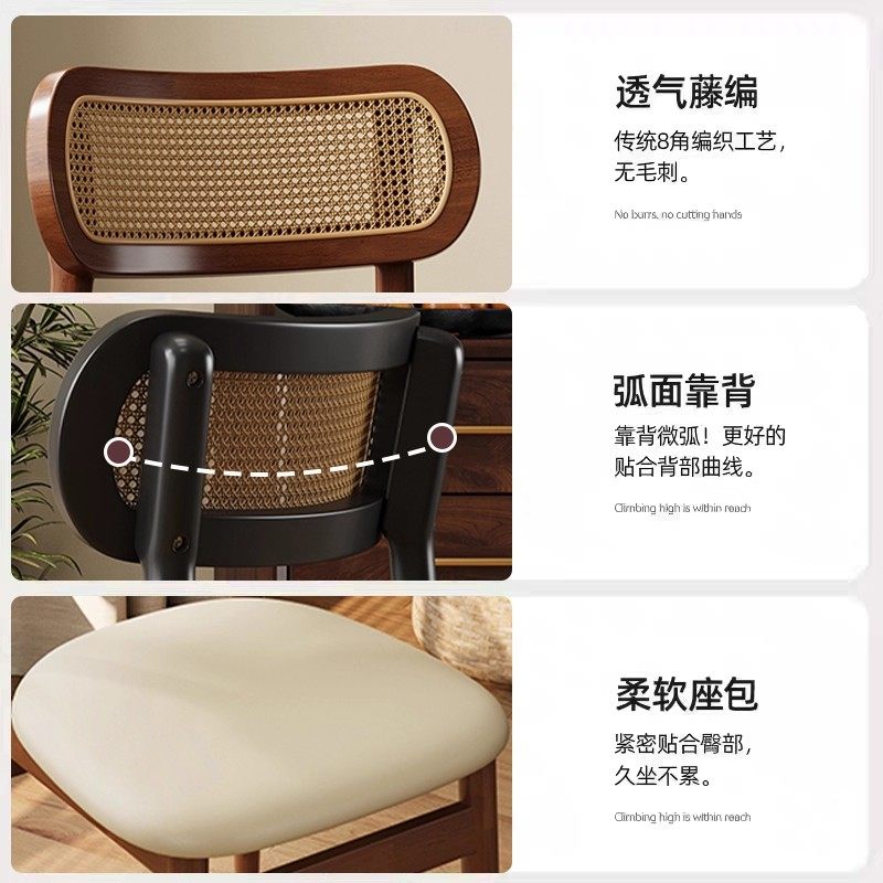 法式复古实木餐椅家用靠背椅子中古风餐厅餐桌椅吧台软包藤编家居
