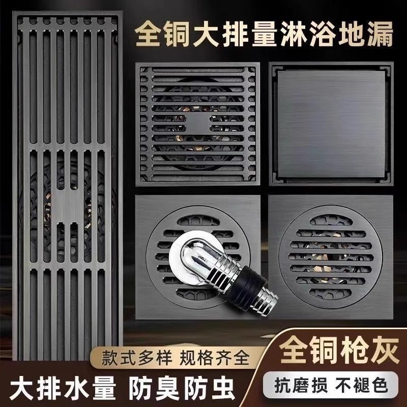 九牧铜合金地漏枪灰大流量防臭防堵卫生间通用浴室洗衣机两用芯盖