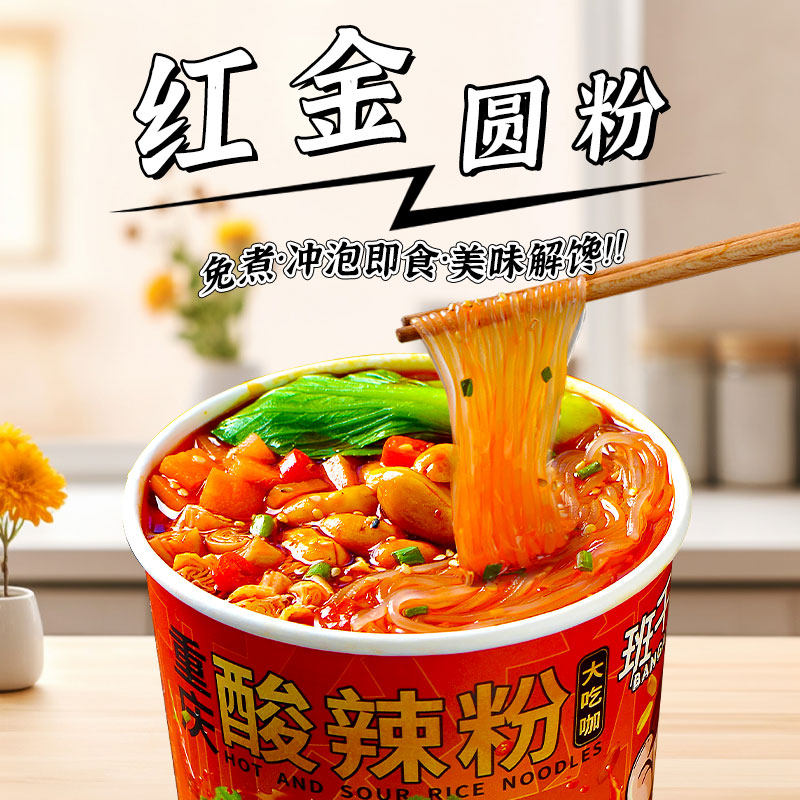 班干部桶装正宗速食酸辣宽粉水晶粉红薯粉脸谱方便面酸辣粉重庆