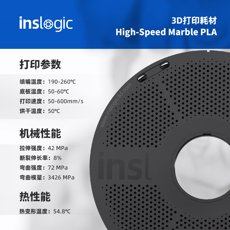 Inslogic3D打印耗材高速PLA材料大理石质感仿真浮雕多色适用拓竹创想3D打印机FDM打印机pla材料线径1.75mm