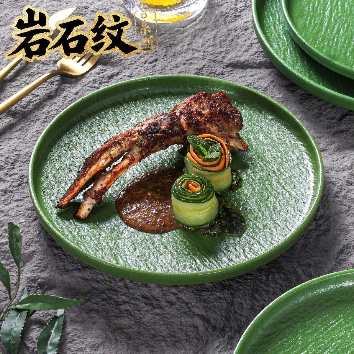 祥源美密胺餐具盘子西式创意牛排意面餐盘浮雕岩石纹沙拉甜品摆盘