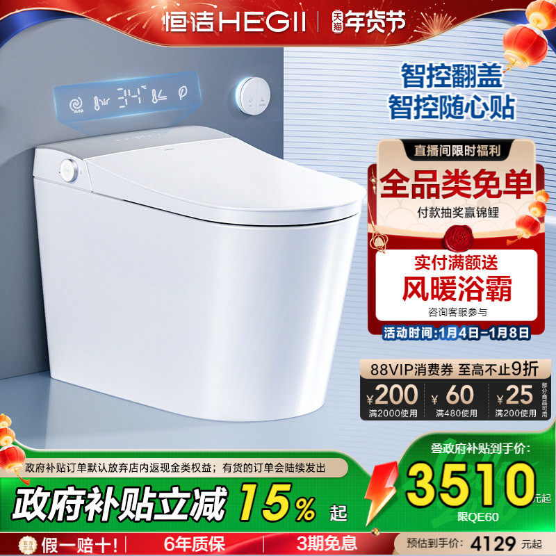 恒洁智能马桶全自动感应一体式座坐便器家用小户型翻圈翻盖QE60