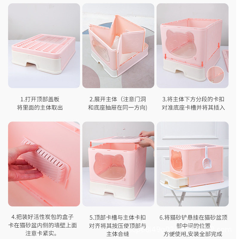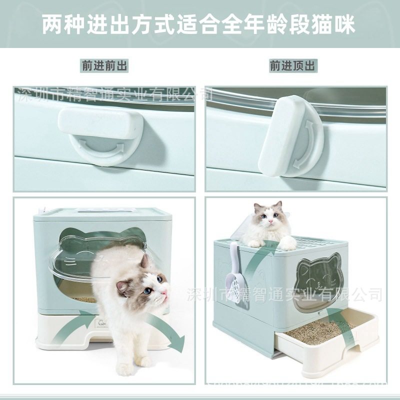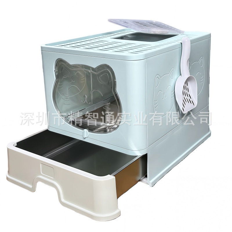 全封闭隔臭带盖大号不锈钢猫砂盆易清理活性炭棉抽屉猫厕所防外溅