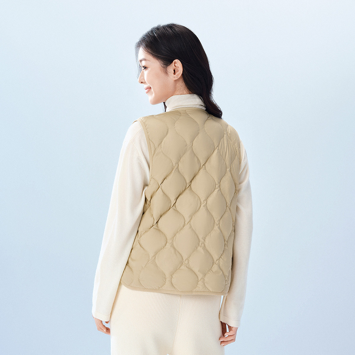 鸭鸭轻薄羽绒服马甲女秋冬季V领基础修身背心内胆鸭绒马夹短外套