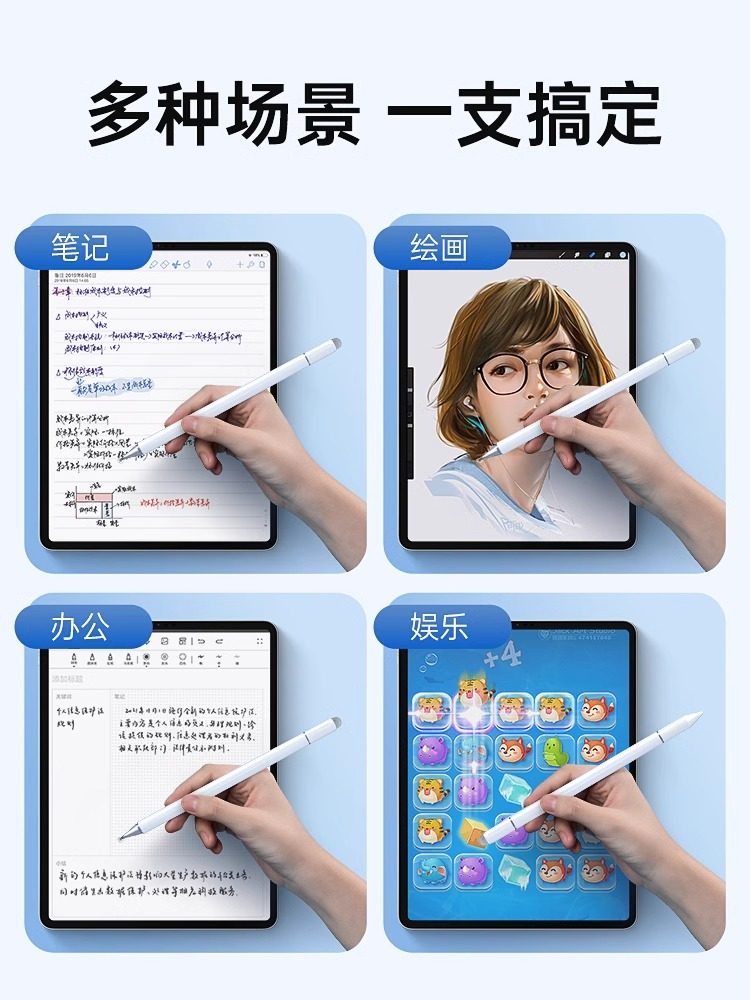 电容笔iPad艾卓吉尔A8适用苹果平板air触控笔ipencil手写笔iPad触屏笔铅笔ipad11笔apple pencil通用笔尖多彩