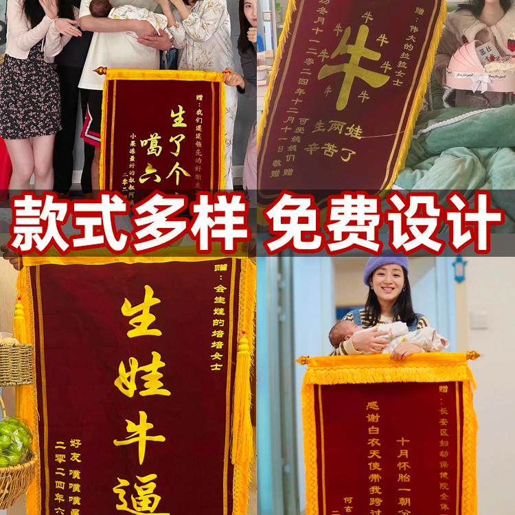 生娃锦旗定做闺蜜生了个人生孩子真了不起旌旗订做送月嫂感谢月子中心创意风光荣产妇医生月嫂助产师月子礼物