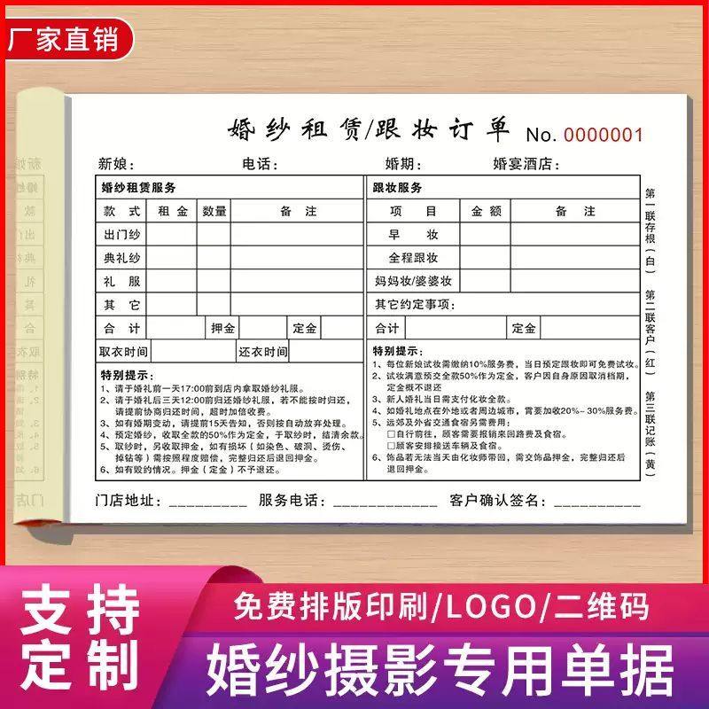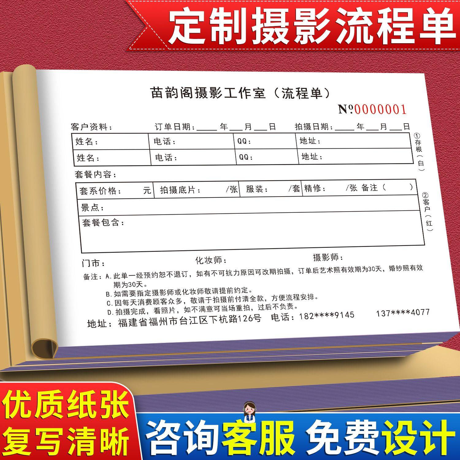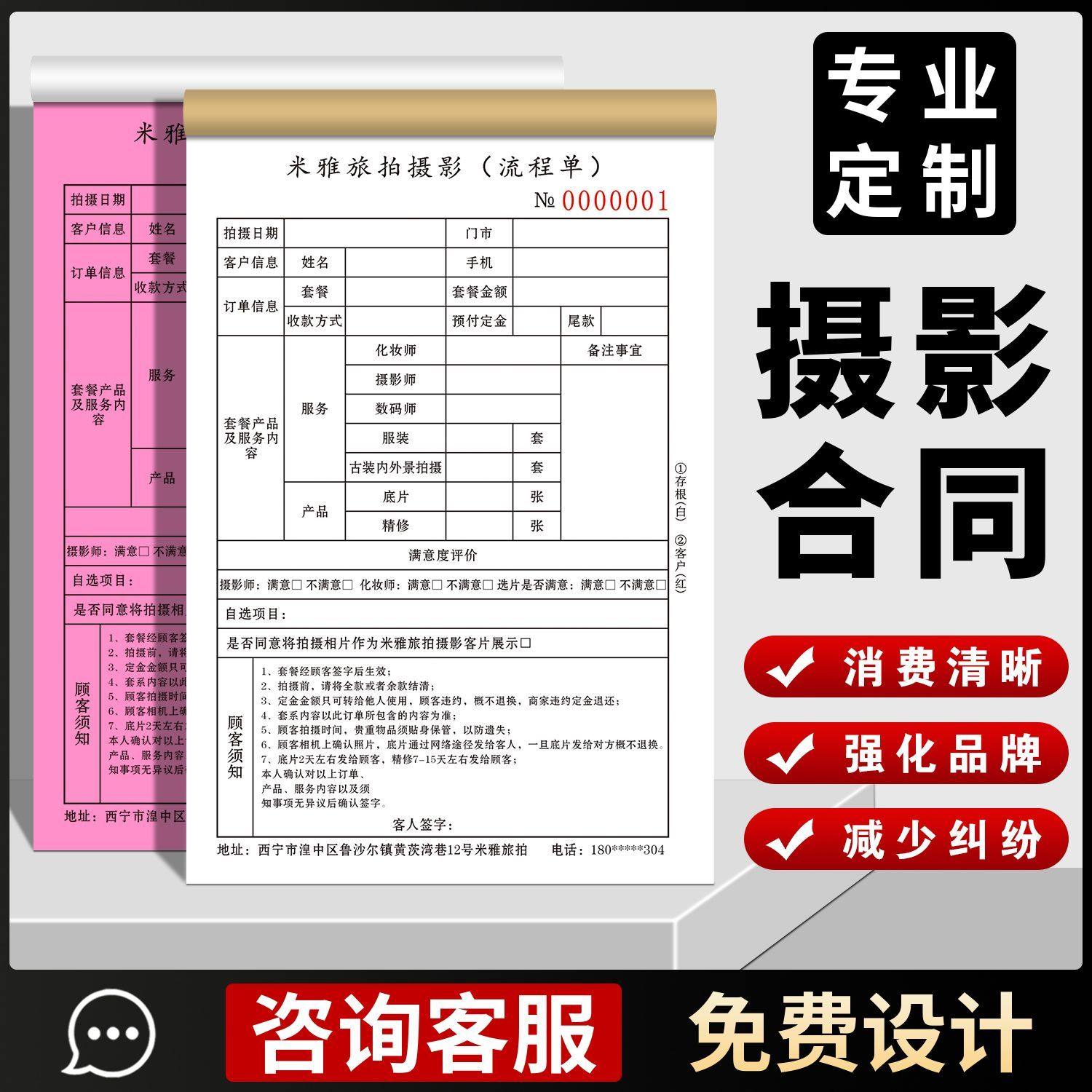 【特价~定制专拍】摄影工作室预约单婚纱摄影订单合同儿童拍照照相馆影楼二联单据本租赁新娘跟妆婚庆收据单
