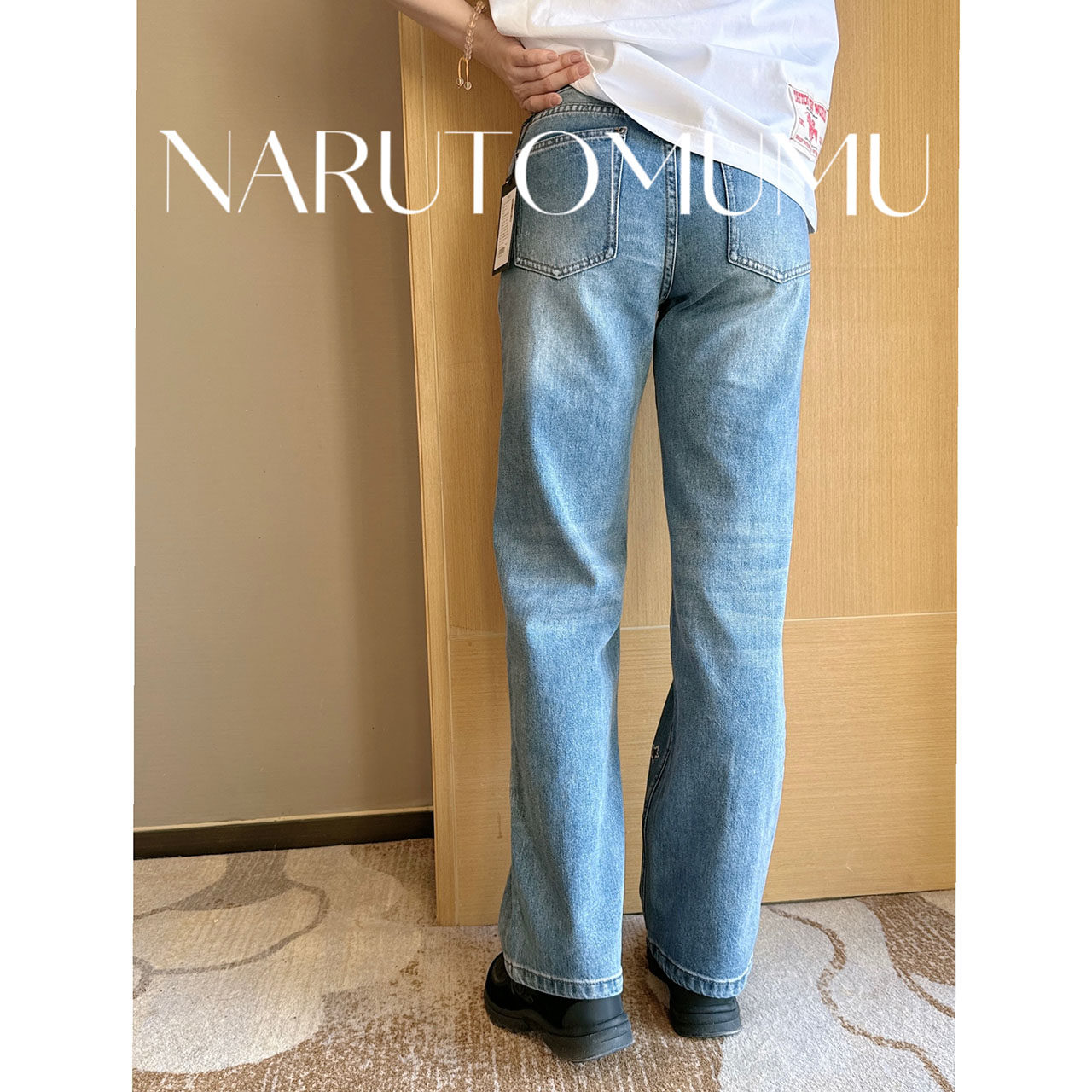 twosweet【超级裤神】四面弹重塑大长腿高腰直筒微喇叭原色牛仔裤