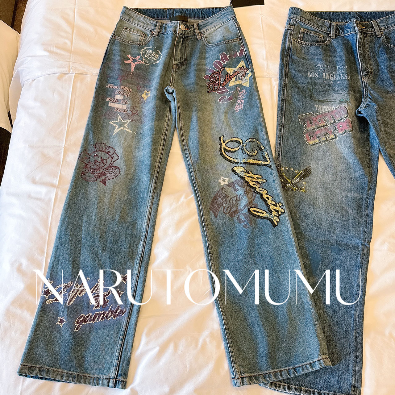 小姐姐全球购ED HARDY 水钻复古印花 直筒阔腿裤 女款 26春01