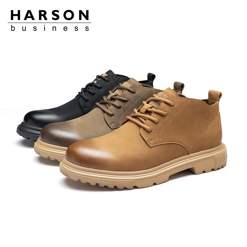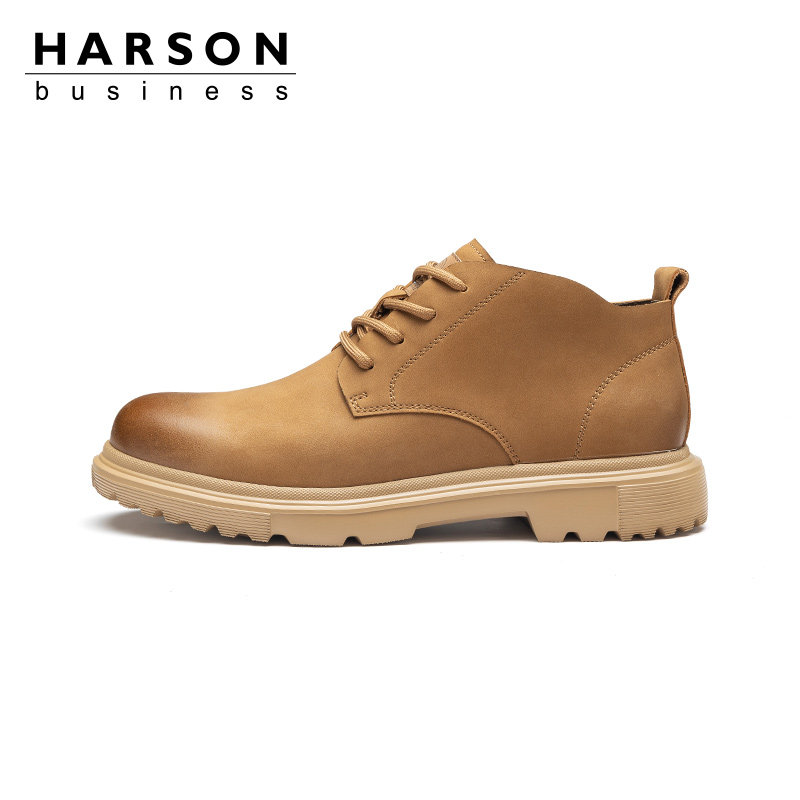哈森男鞋工装沙漠靴大头皮鞋踢不烂大黄靴子男款专柜同款MA244125