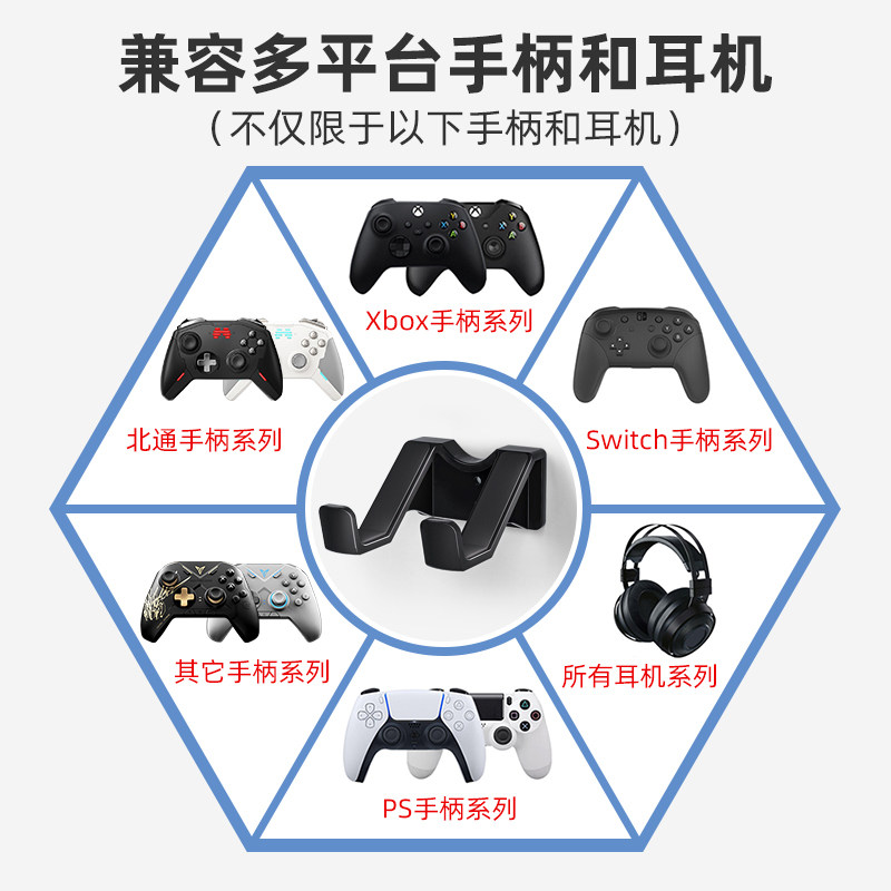 手柄支架适用于PS5游戏机主机头戴耳机架子xbox手柄支架ps4通用挂架免打孔收纳架托架switch配件粘贴壁挂