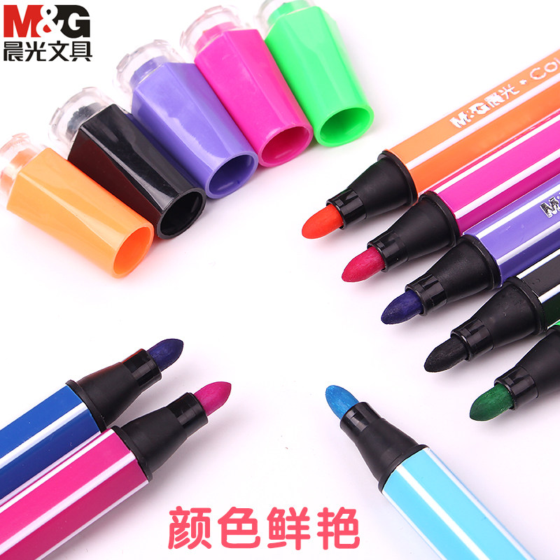 晨光水彩笔儿童可水洗无毒不脏手彩笔幼儿园专用小学生水性彩色笔24色画画笔易可洗12色软头绘画48色颜色36色