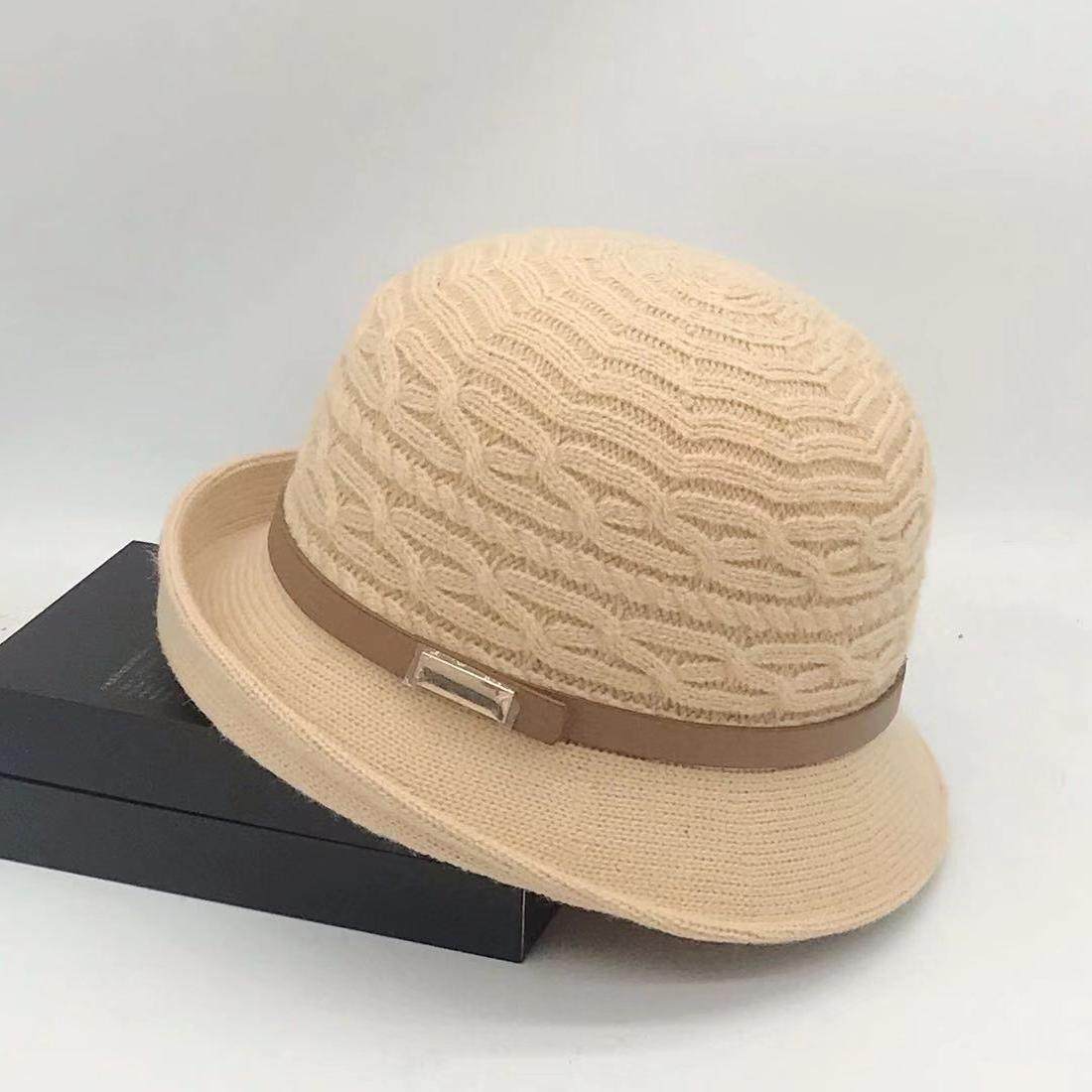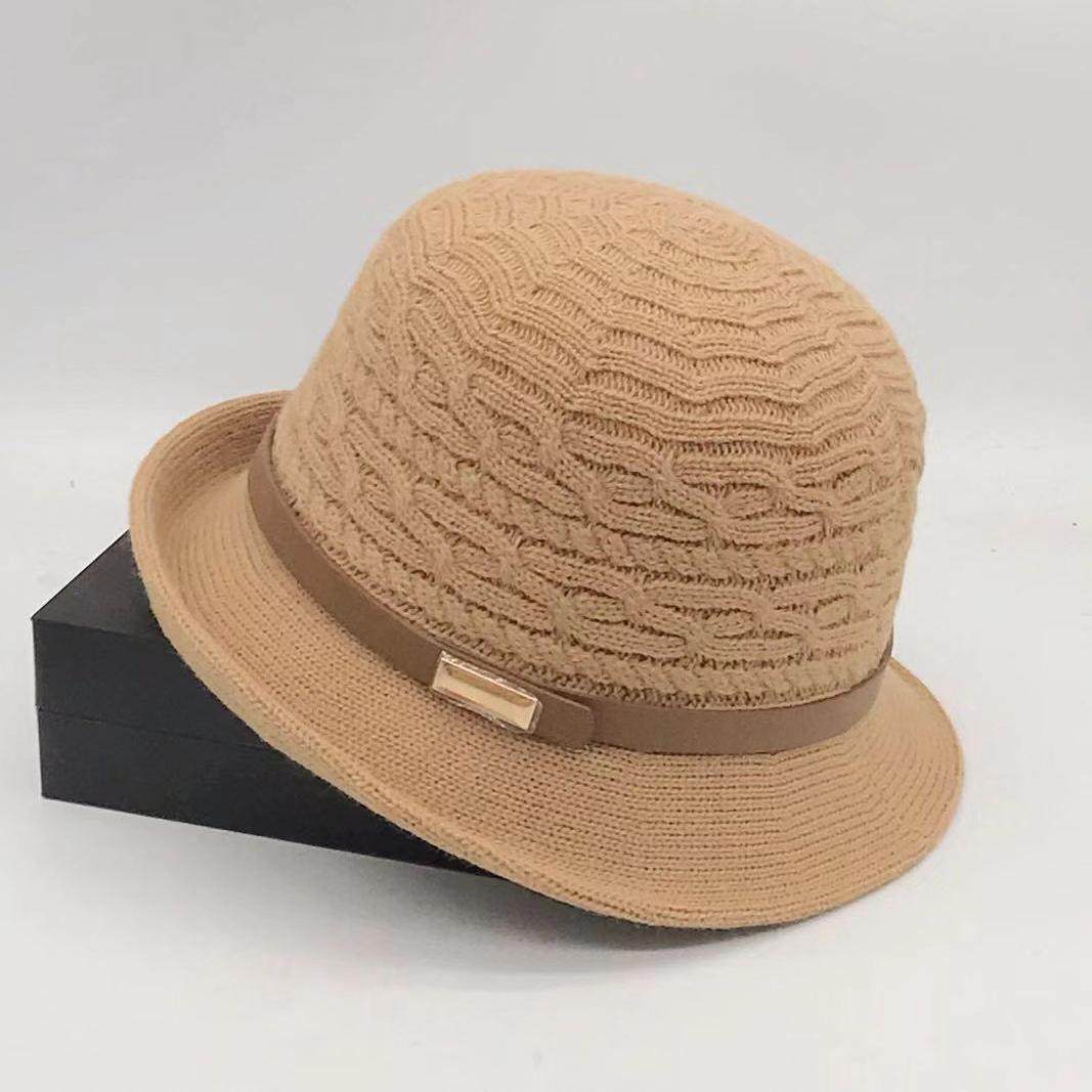 日系针织卷边小礼帽渔夫帽子女秋冬复古百搭英伦名媛圆顶盆帽韩版