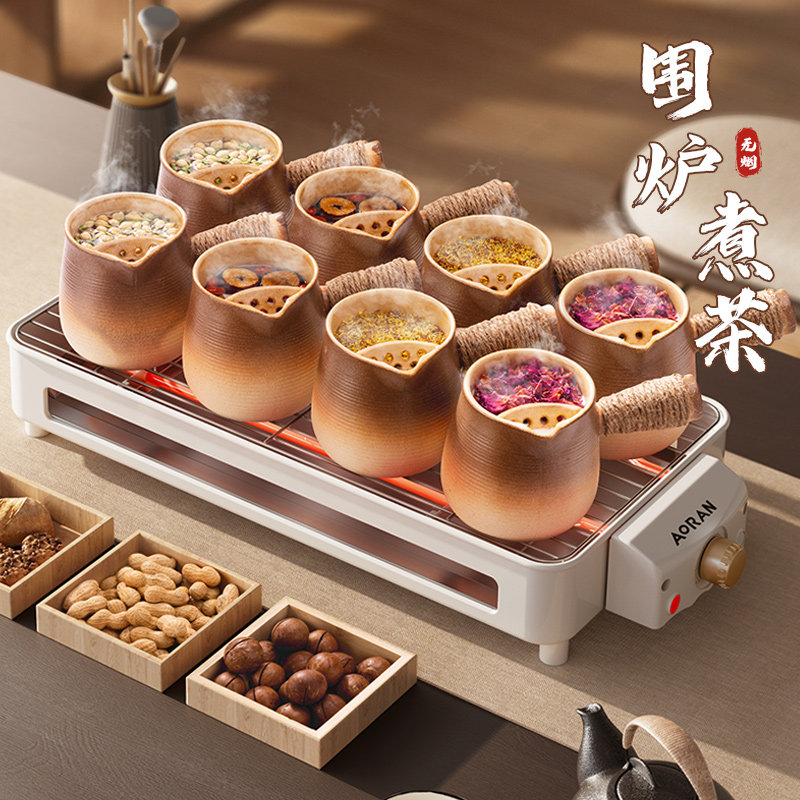 奥然围炉煮茶室内家用电陶炉户外烤火炉套装围聚炉子烧烤炉电烤炉