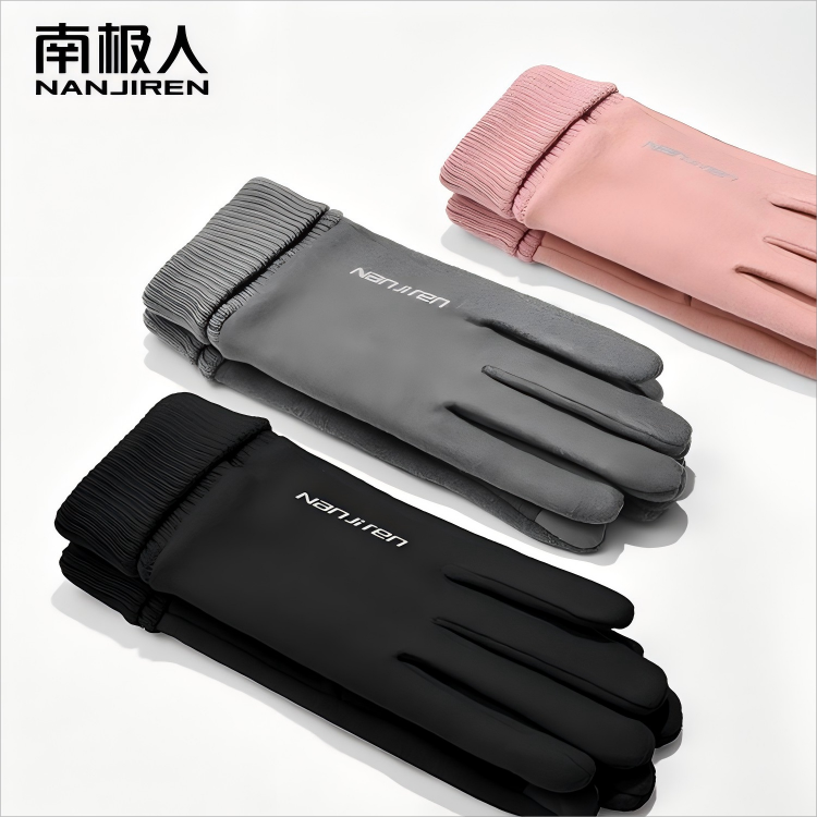 德绒手套女士冬天加绒保暖户外东北开车防寒手套男冬季骑行可触屏