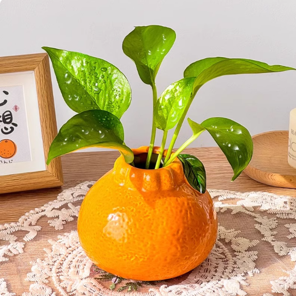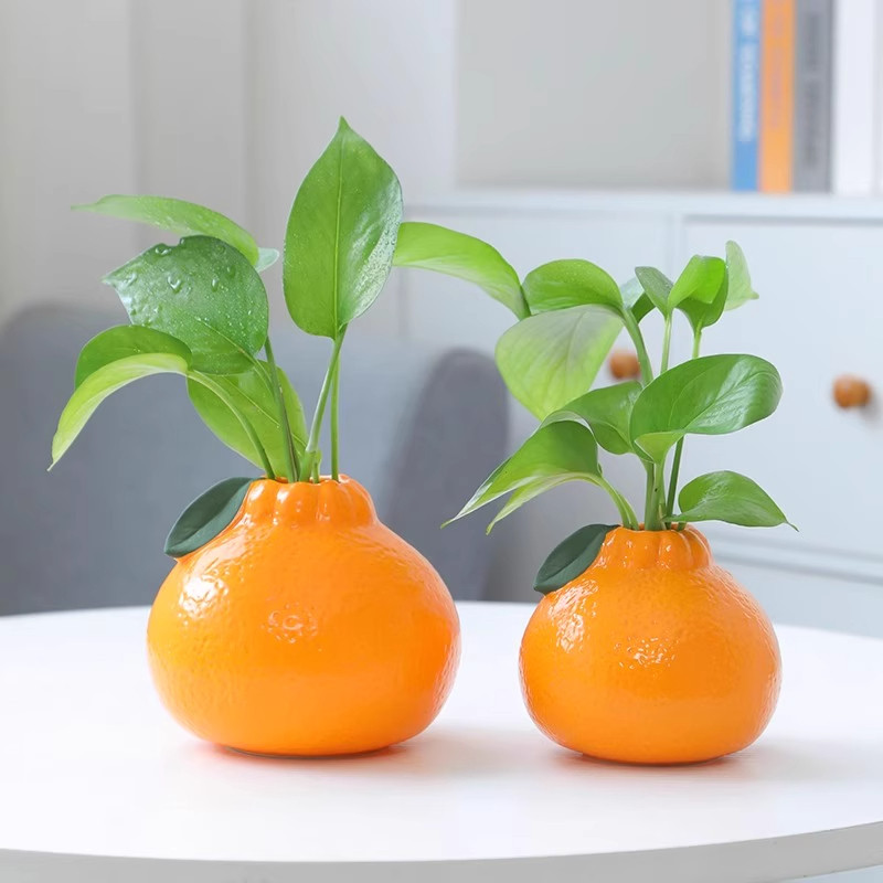 创意仿真橘子花瓶养水绿箩水培花盆家具桌摆装饰摆件高颜值田园风