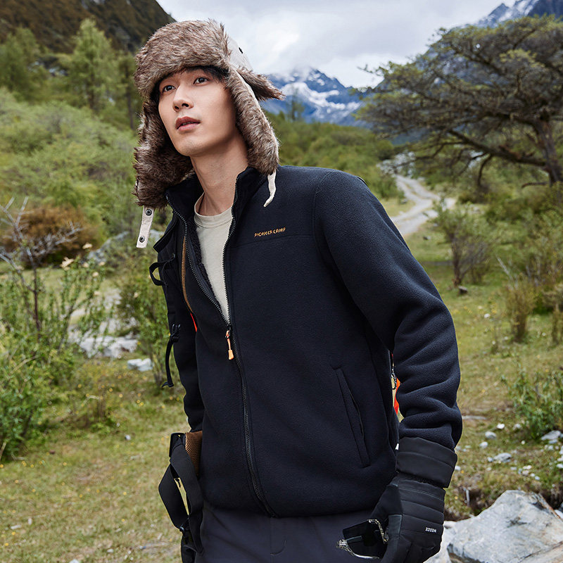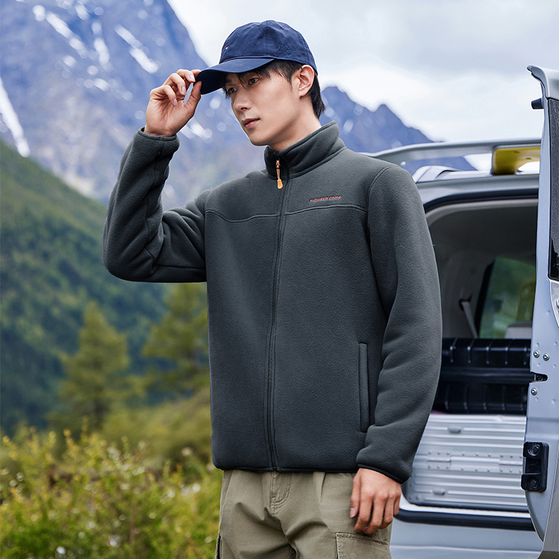 拓路者户外开衫立领抓绒衣男春秋双面加绒加厚摇粒绒夹克外套
