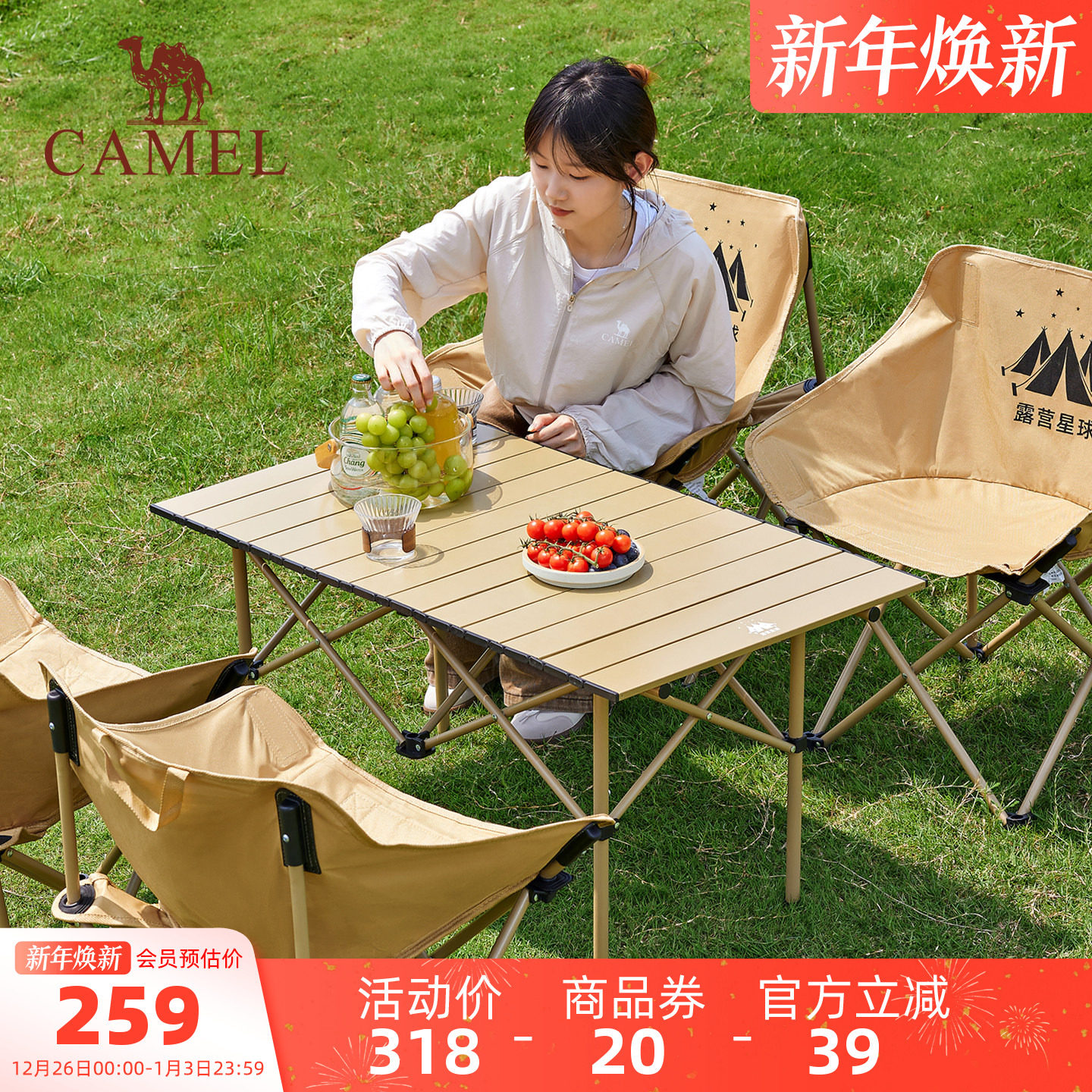 kingcamp&FUNDANGO系列户外折叠蛋卷桌露营便携折叠桌铝卷桌超轻