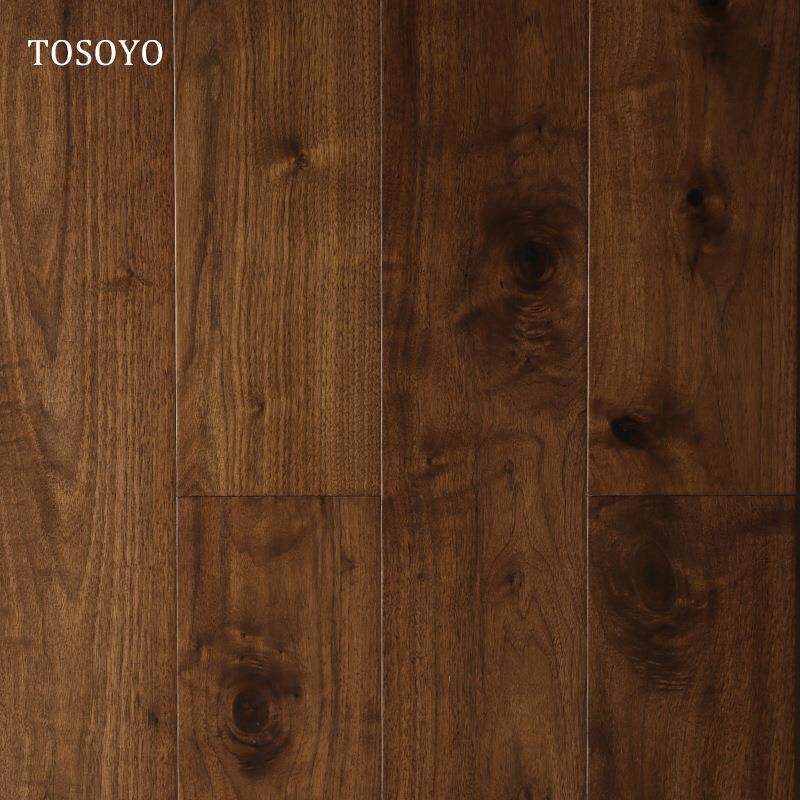 黑胡桃地板芯三层实木地板地暖经典平面复古手刮带疤结多层真木皮
