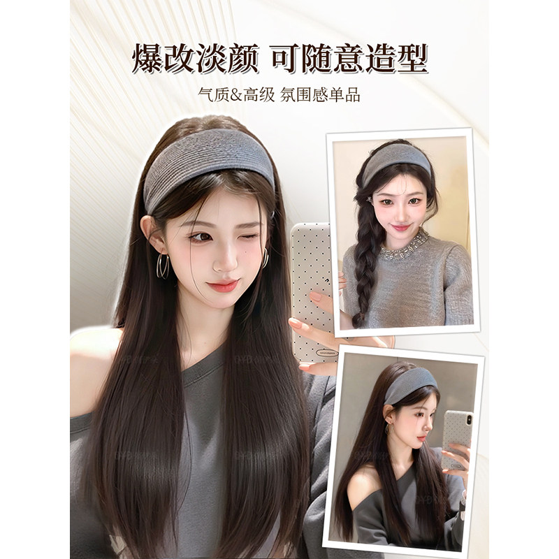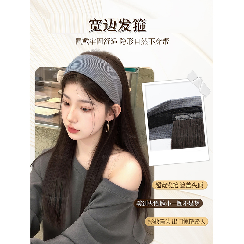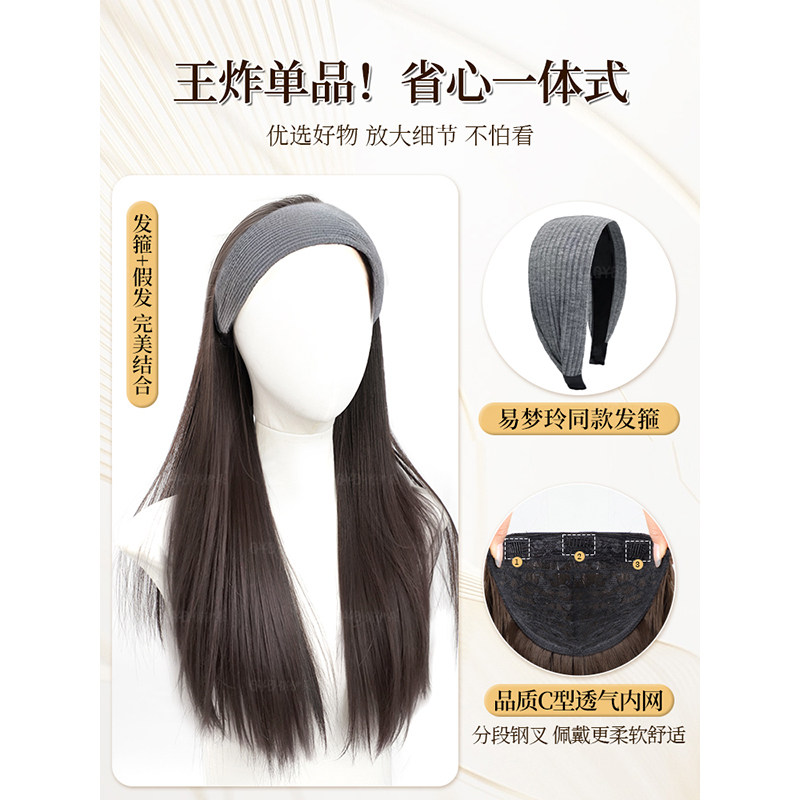 发箍假发片一体女易梦玲同款长直发自然增高颅顶仿真发假发半头套