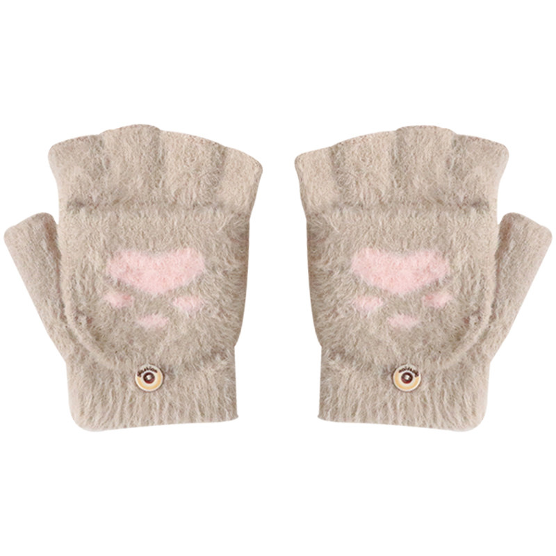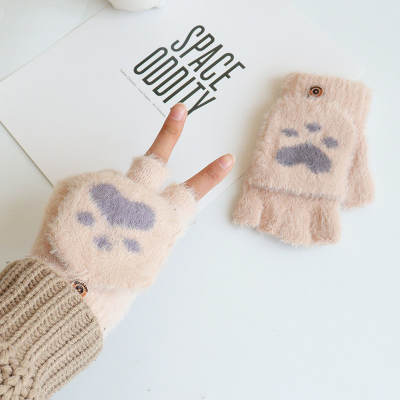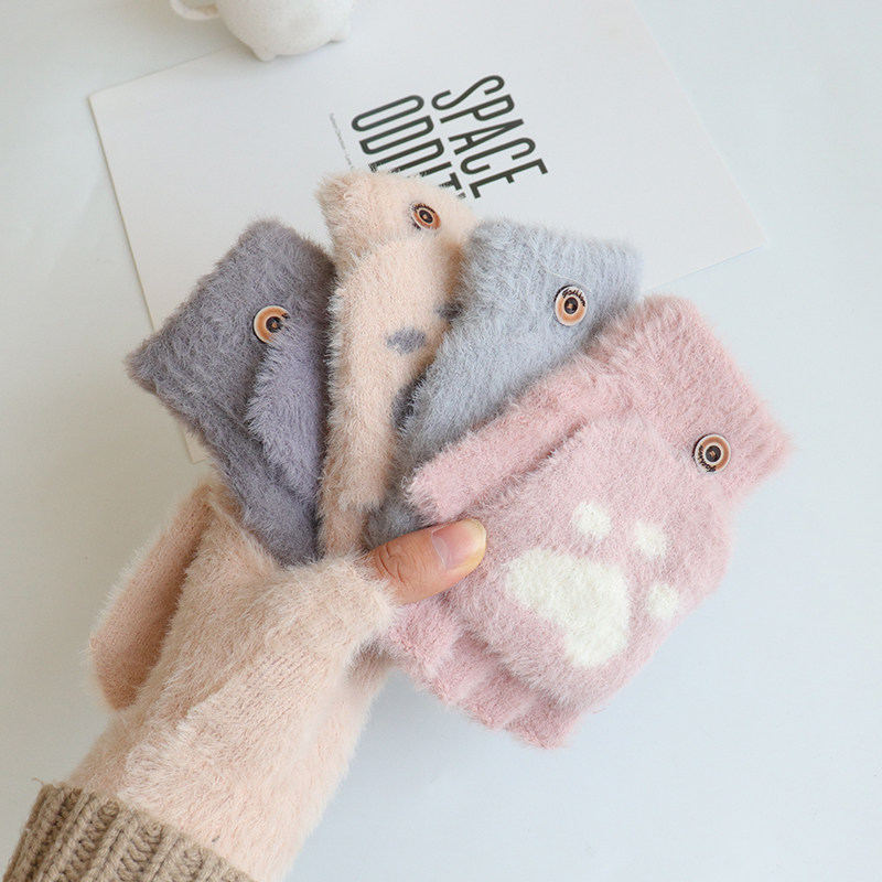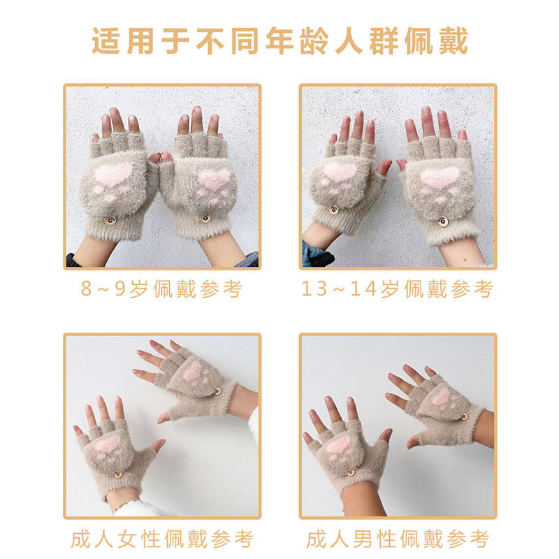 儿童手套冬季写字女童露指半指12岁学生冬天保暖可爱小女孩公主