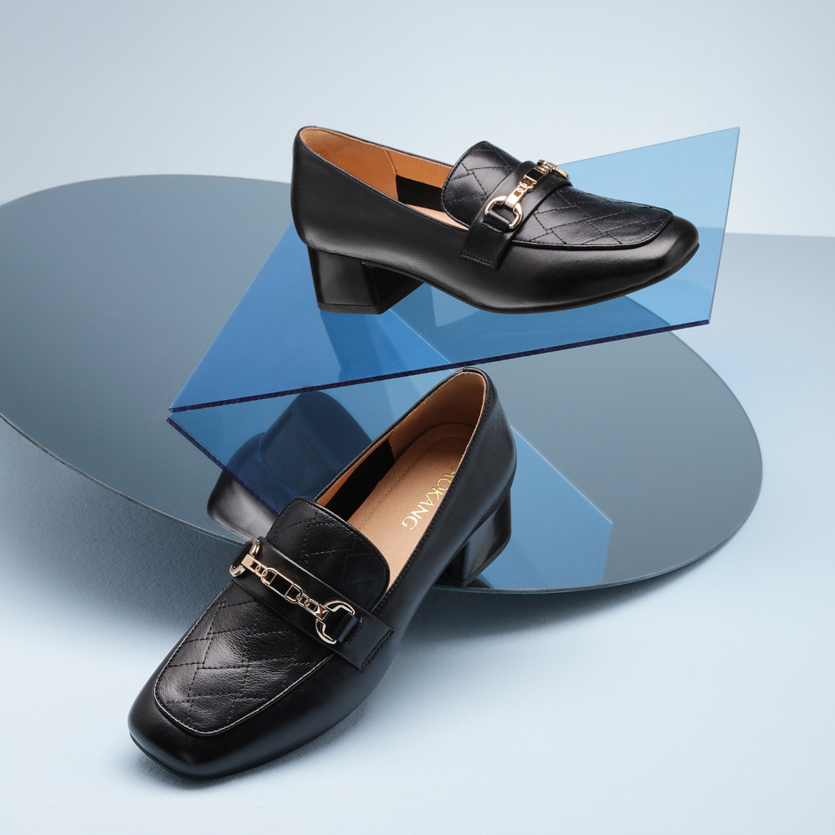 奥康女鞋春秋时尚真皮浅口单鞋粗跟小皮鞋舒适乐福鞋门店发货