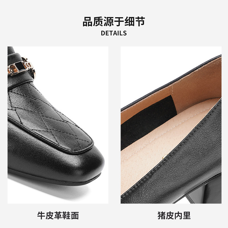时尚真皮浅口单鞋粗跟小皮鞋