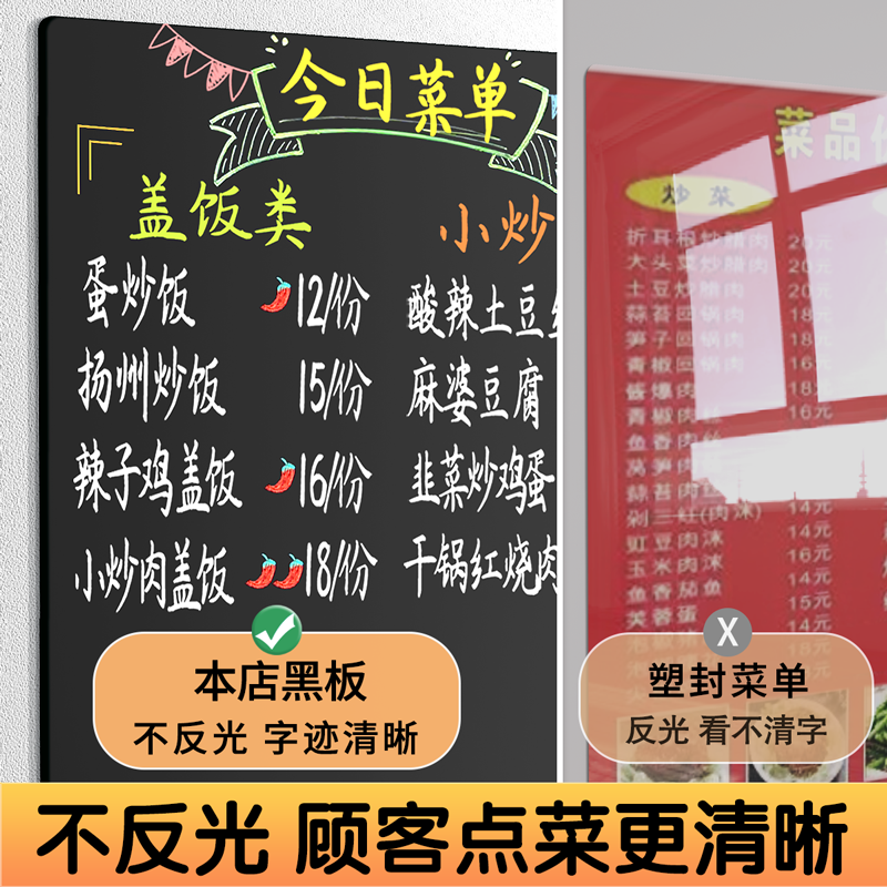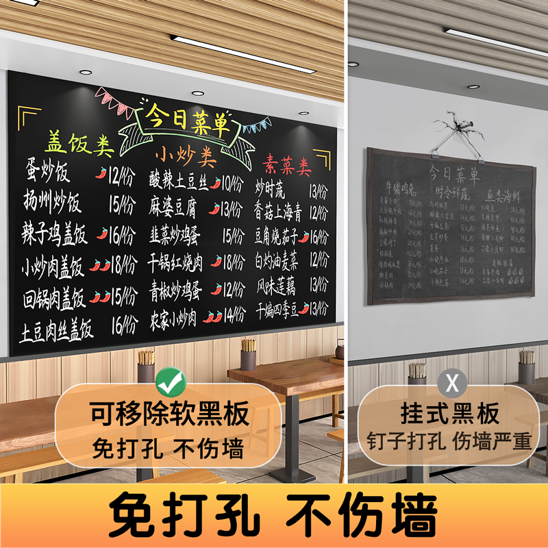 黑板墙贴餐饮店菜单商用磁吸小黑板店铺用黑板贴可擦可移除不伤墙面贴纸黑板纸自粘定制挂墙摆摊展示牌广告牌