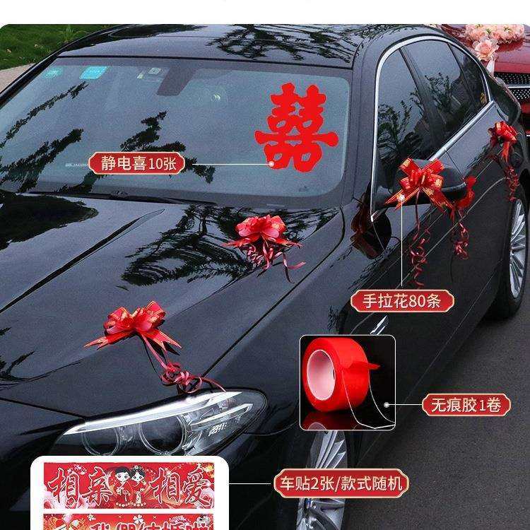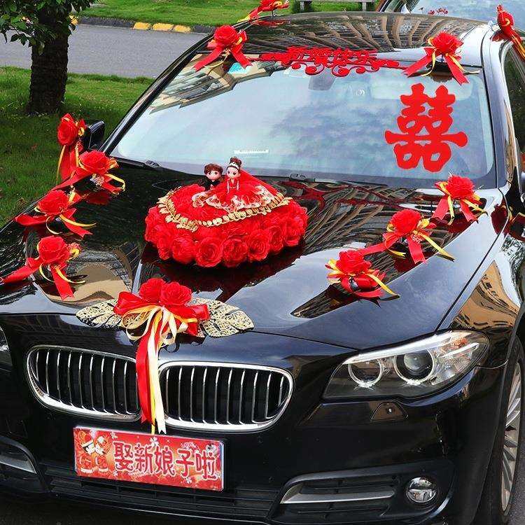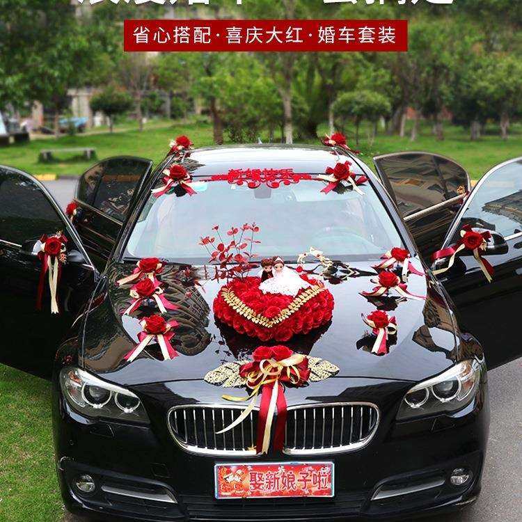 婚车装饰品全套装副车头花新娘结婚礼布置创意红色迎亲花车队