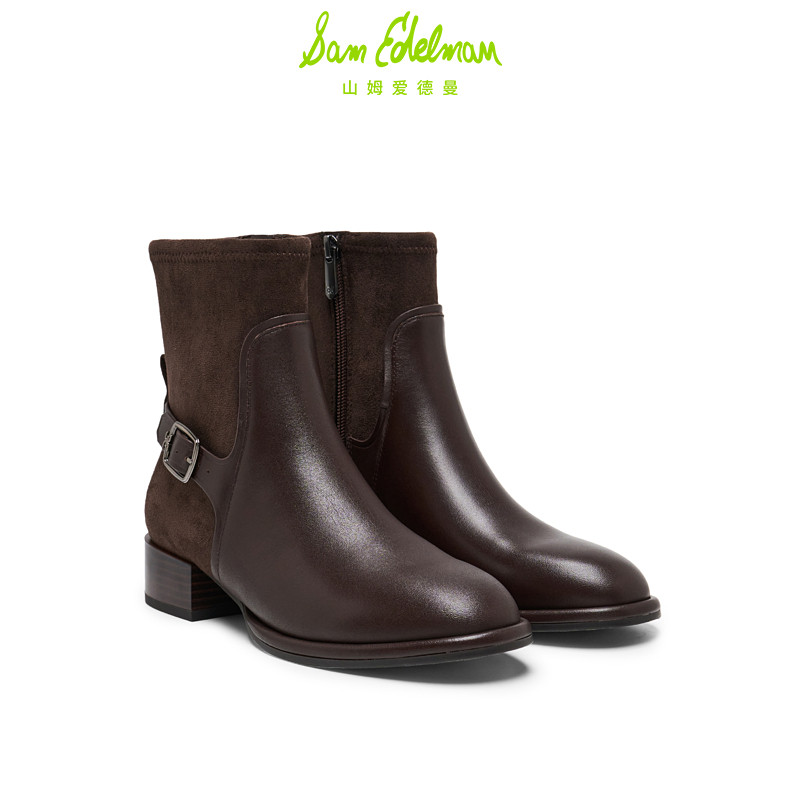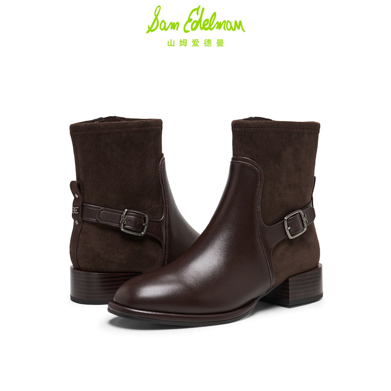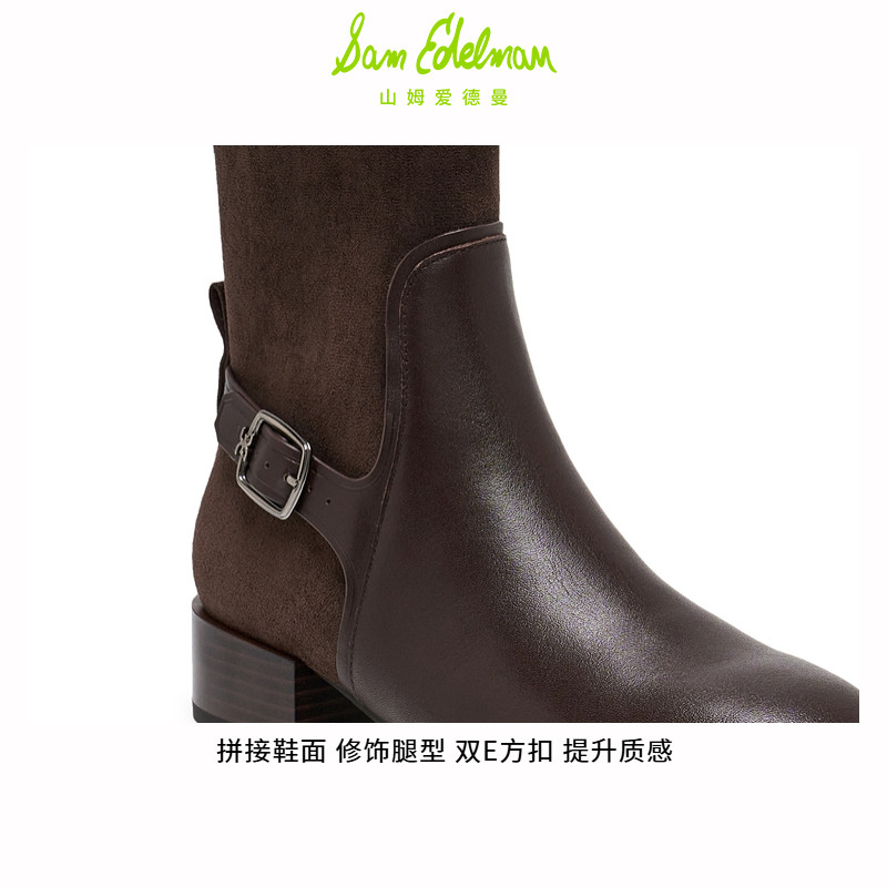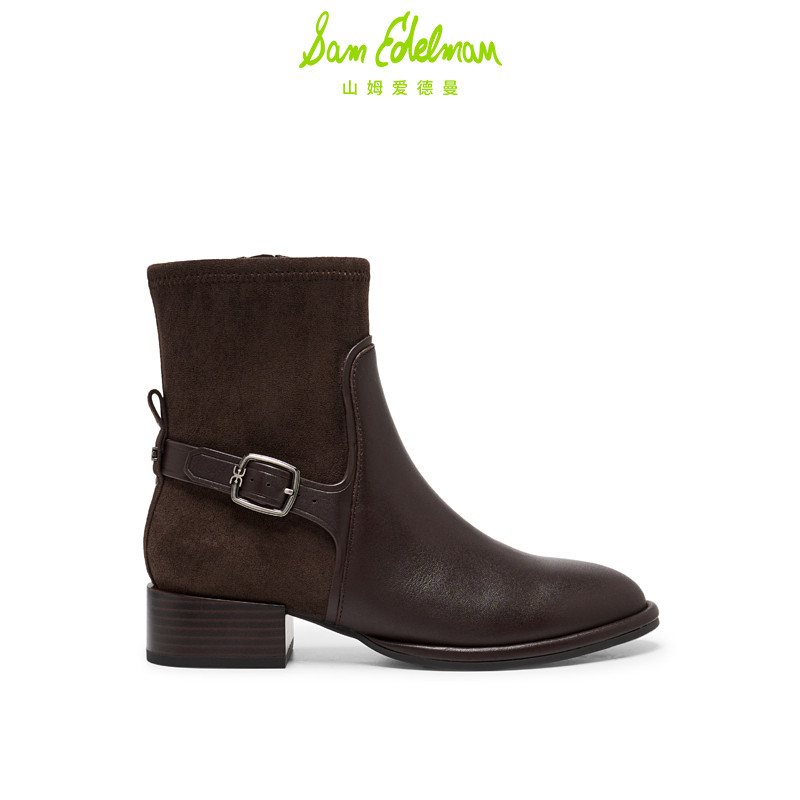 SAM EDELMAN山姆爱德曼冬圆头皮带扣骑士女瘦瘦短靴黑HADDIE