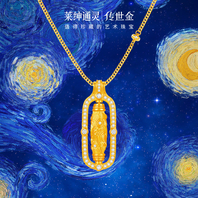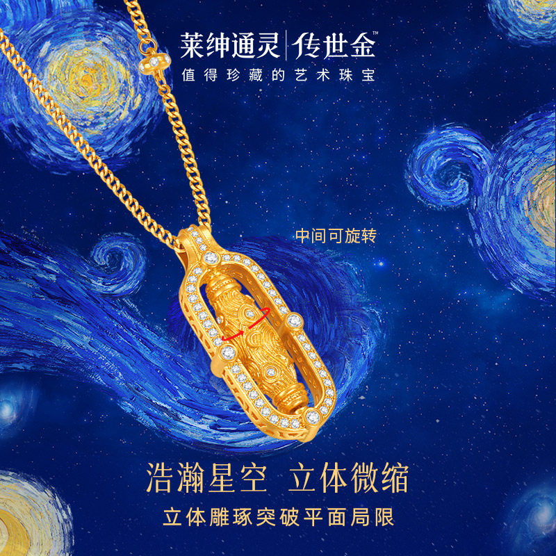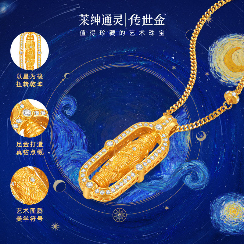 【商场同款】莱绅通灵传世金艺术馆转运星轮 足金钻石项链 金刚杵