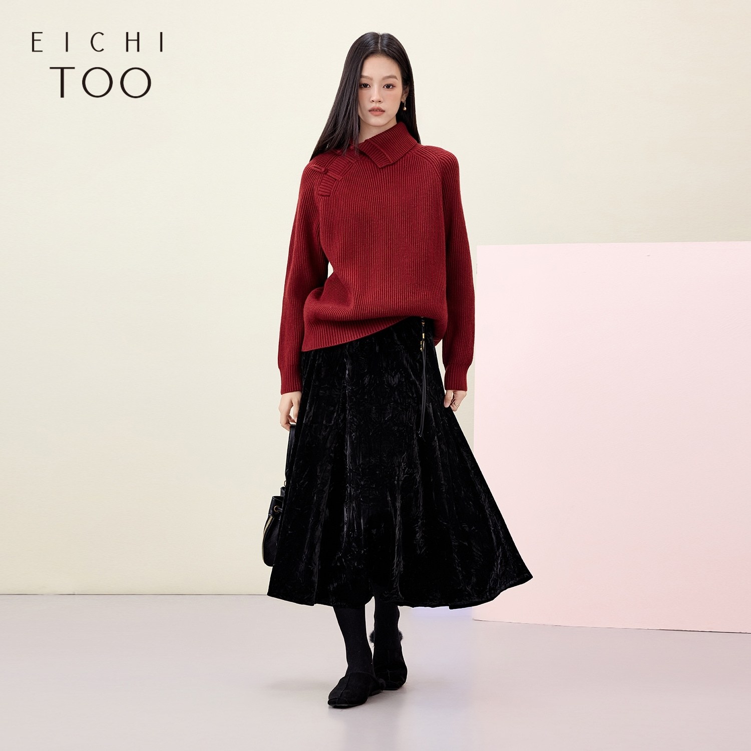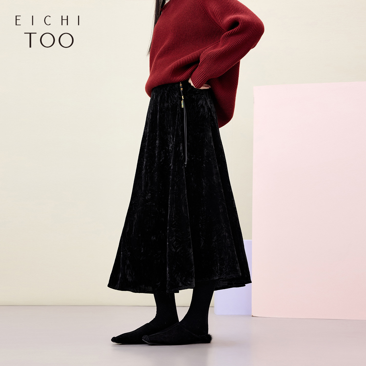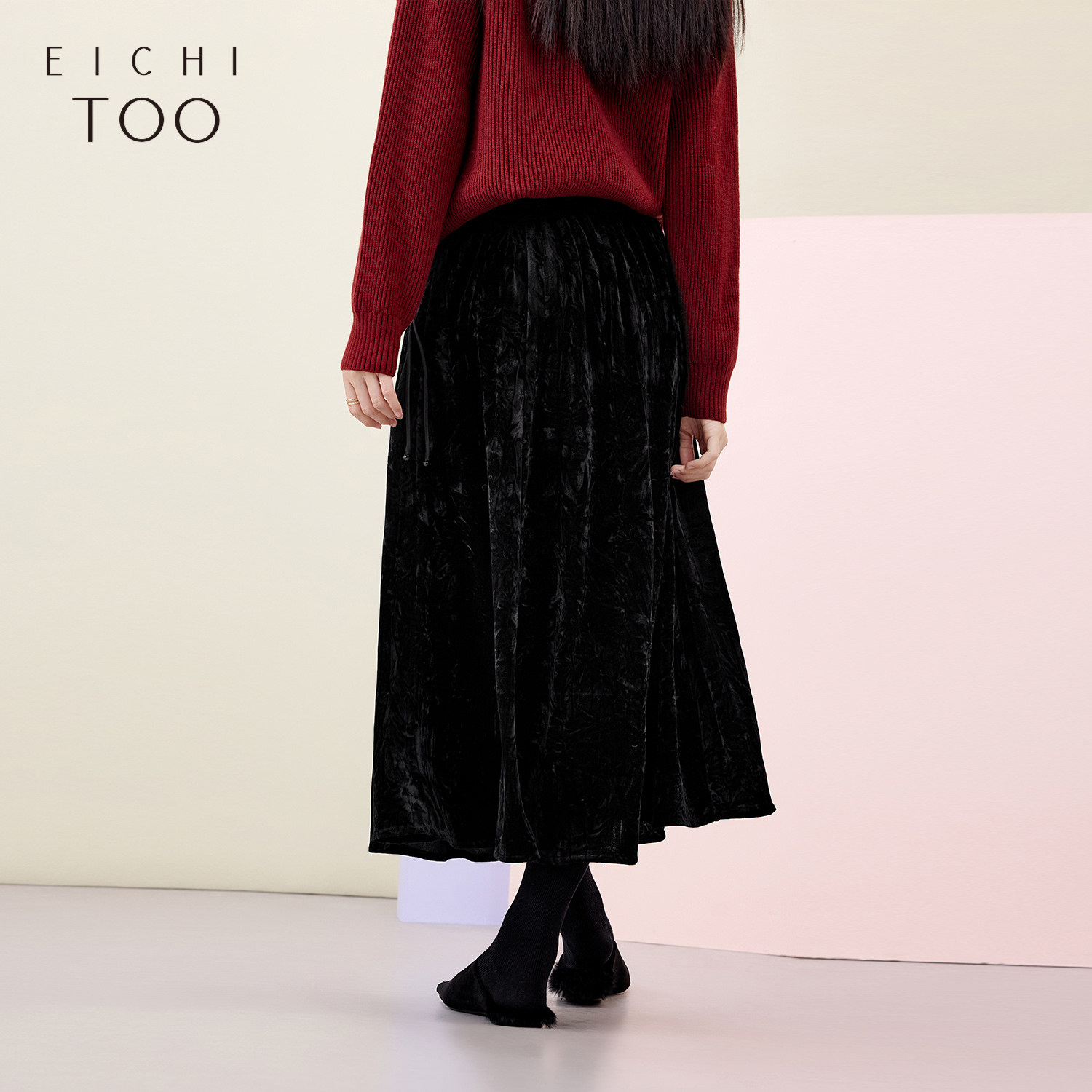 爱居兔简约百搭半身裙女冬季新款时尚中长款百褶裙马面裙