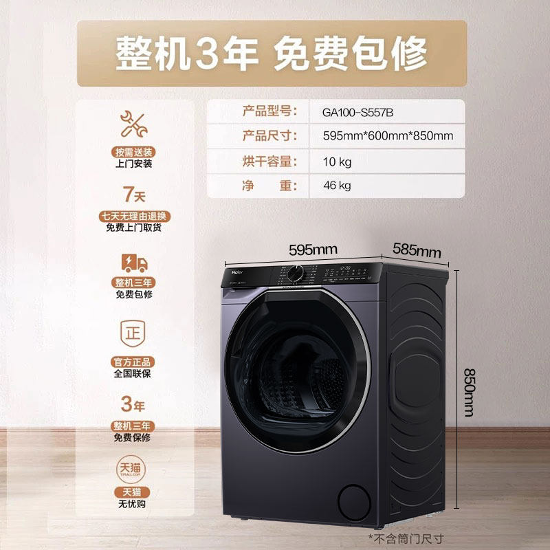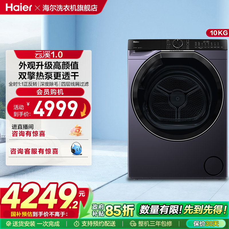 [云溪冠军版]海尔超薄双擎热泵10kg家用全自动滚筒烘干机557B