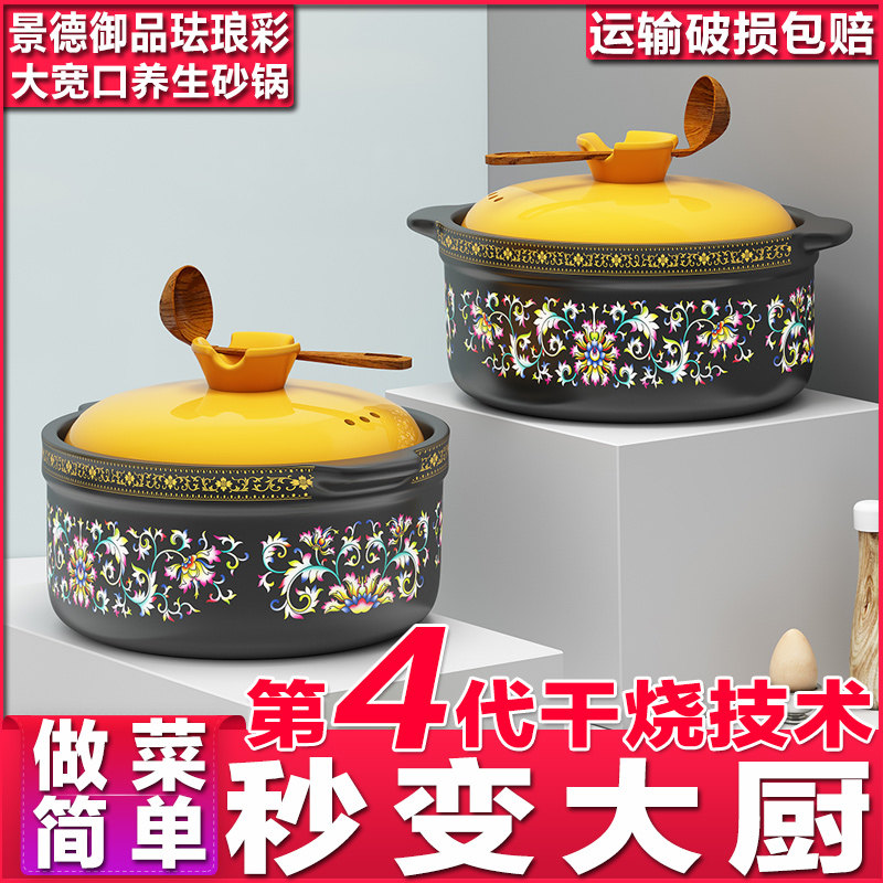 宽口炒菜家用砂锅耐高温干烧不裂煲汤炖煮肉鸡焖熬粥锅陶瓷沙石锅