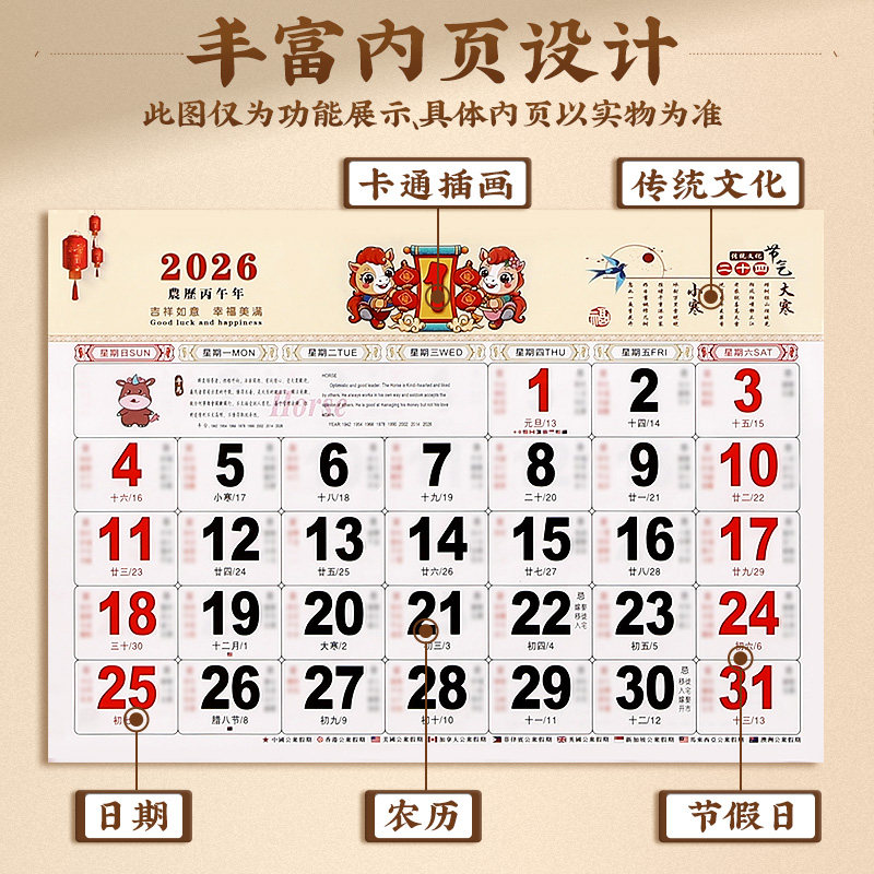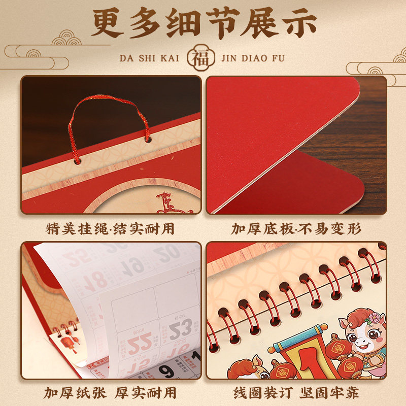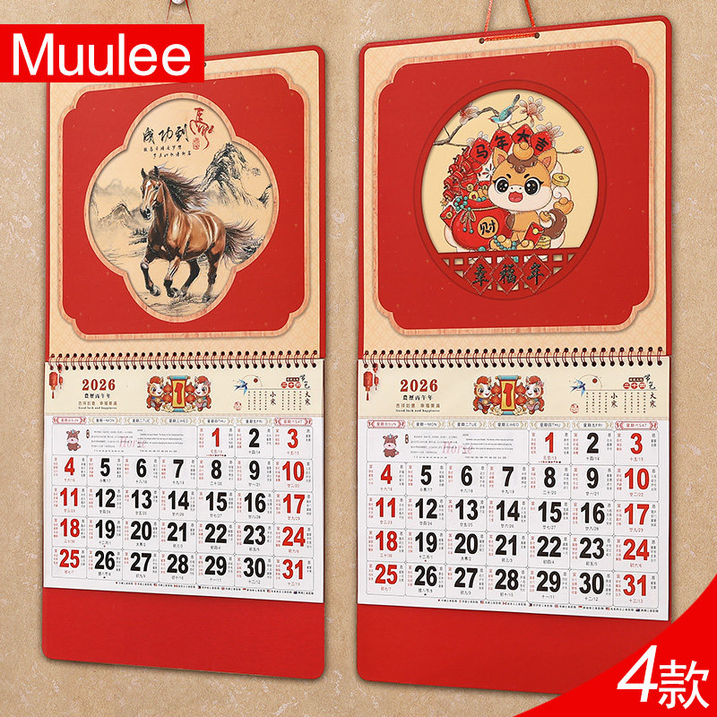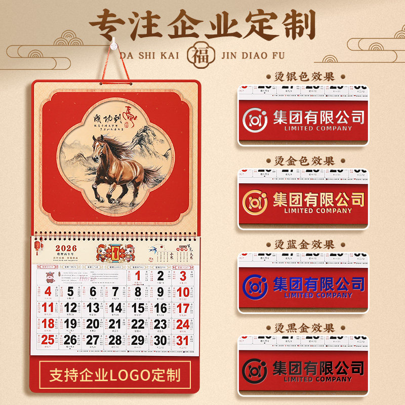 挂历2026马年新款福字吊牌家用装饰挂墙创新工艺加厚挂式日历公司新年礼品企业logo广告定做年历日历批发定制