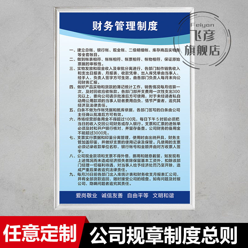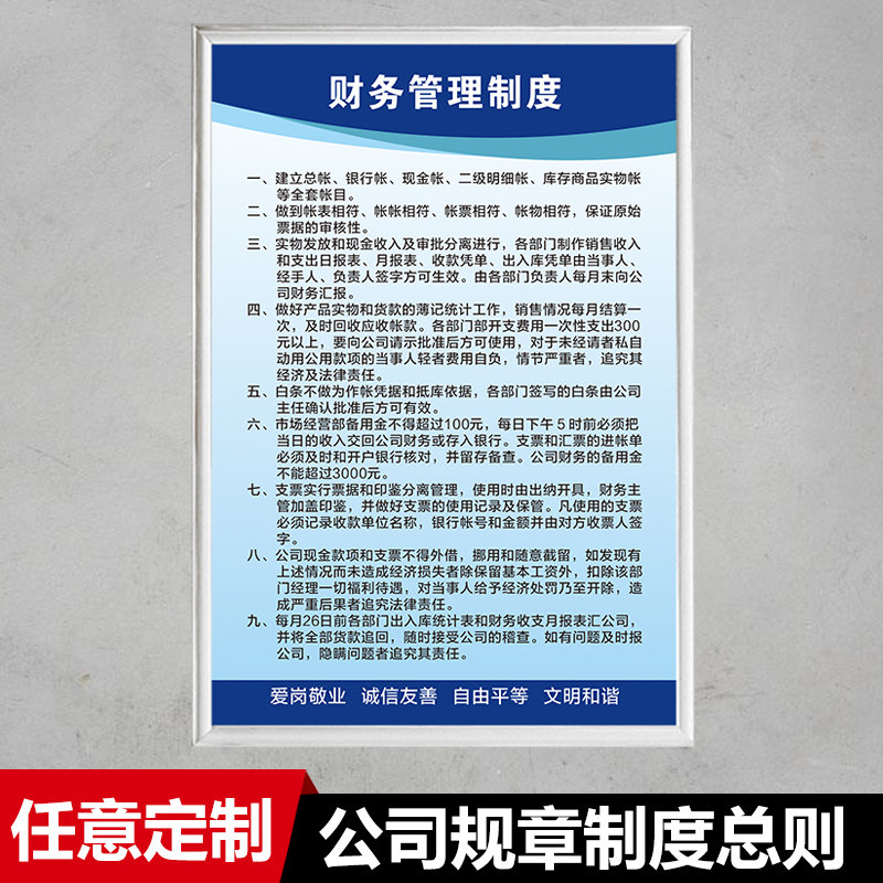 公司财务管理制度公司各部门职责/员工手册规章制度总则企业工厂车间标语标牌海报挂图办公室贴墙定制