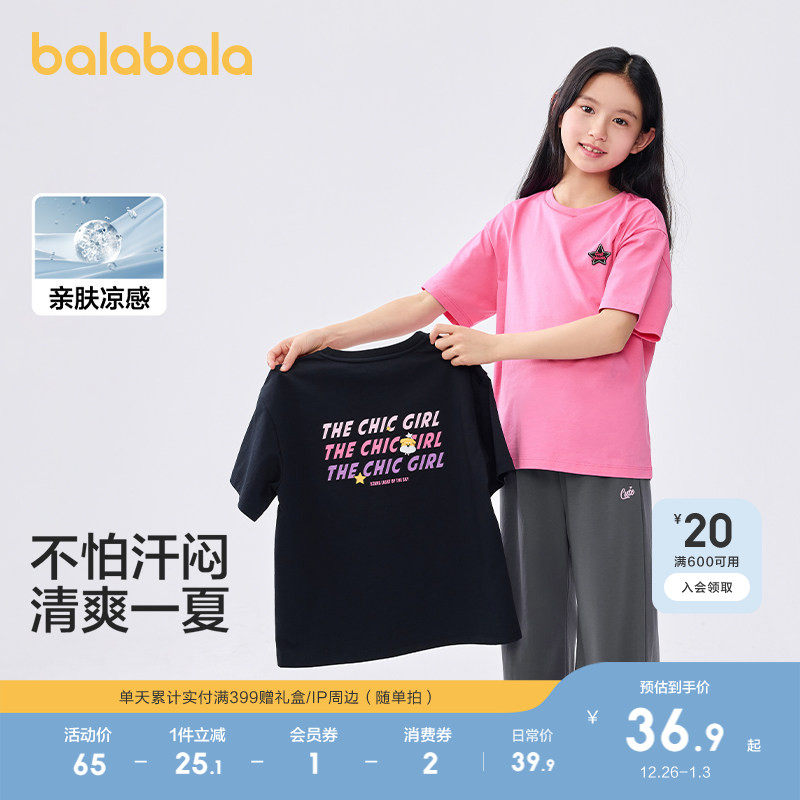 巴拉巴拉童装儿童短袖t恤女童2025新款夏装大童速干甜美印花上衣