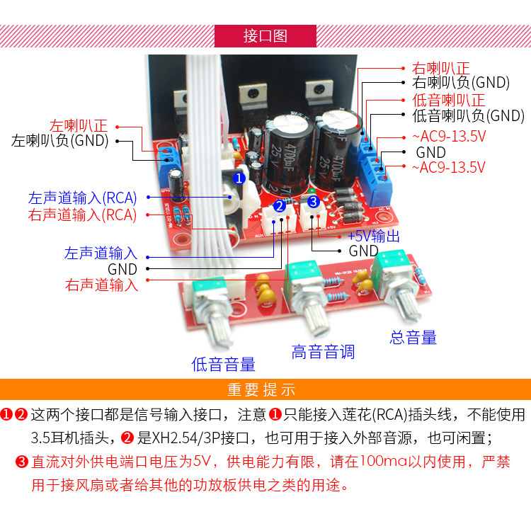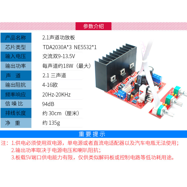 TDA2030A发烧HIFI超重低音2.1大功率3声道电脑低音炮功放板套散件