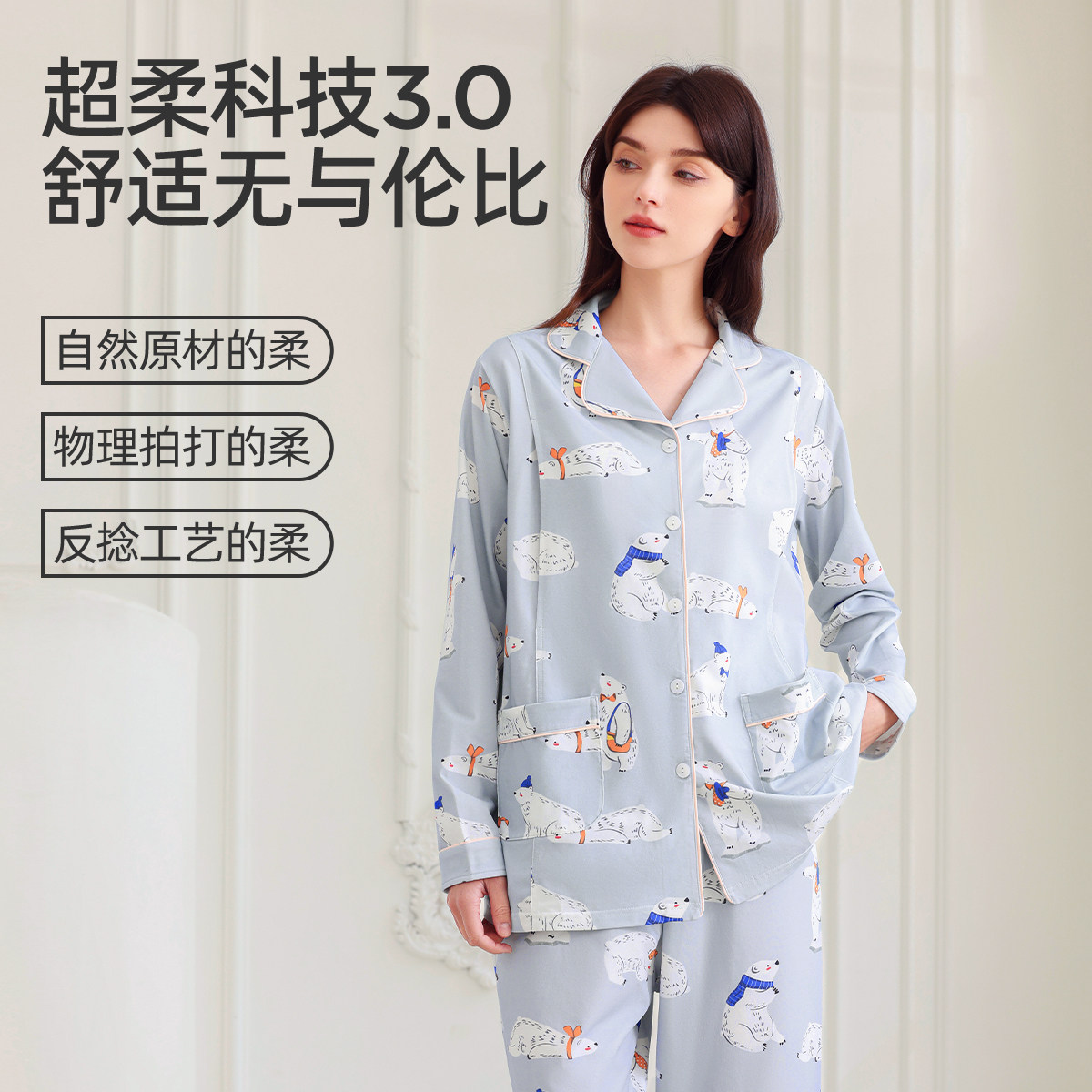 ROVO秋冬月子服12月睡衣女长袖哺乳家居服产妇产后待产服孕妇爆款