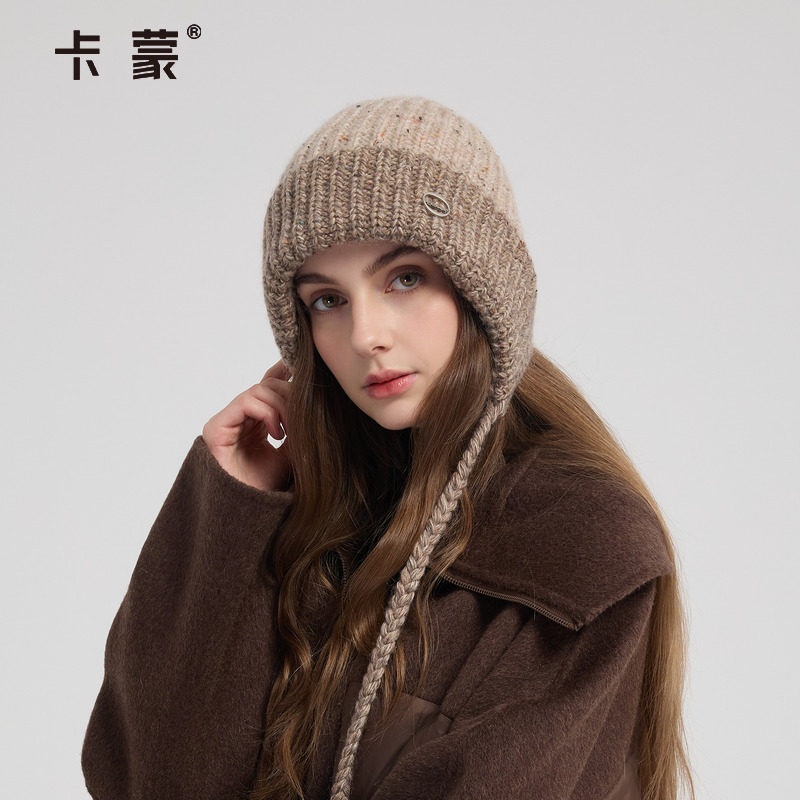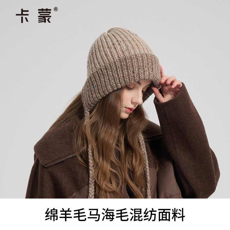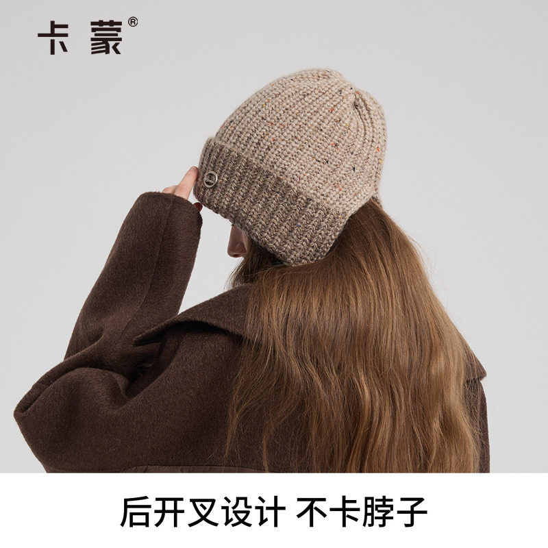 卡蒙新款帽子女士冬加厚保暖针织帽时尚洋气防风防寒护耳帽毛线帽