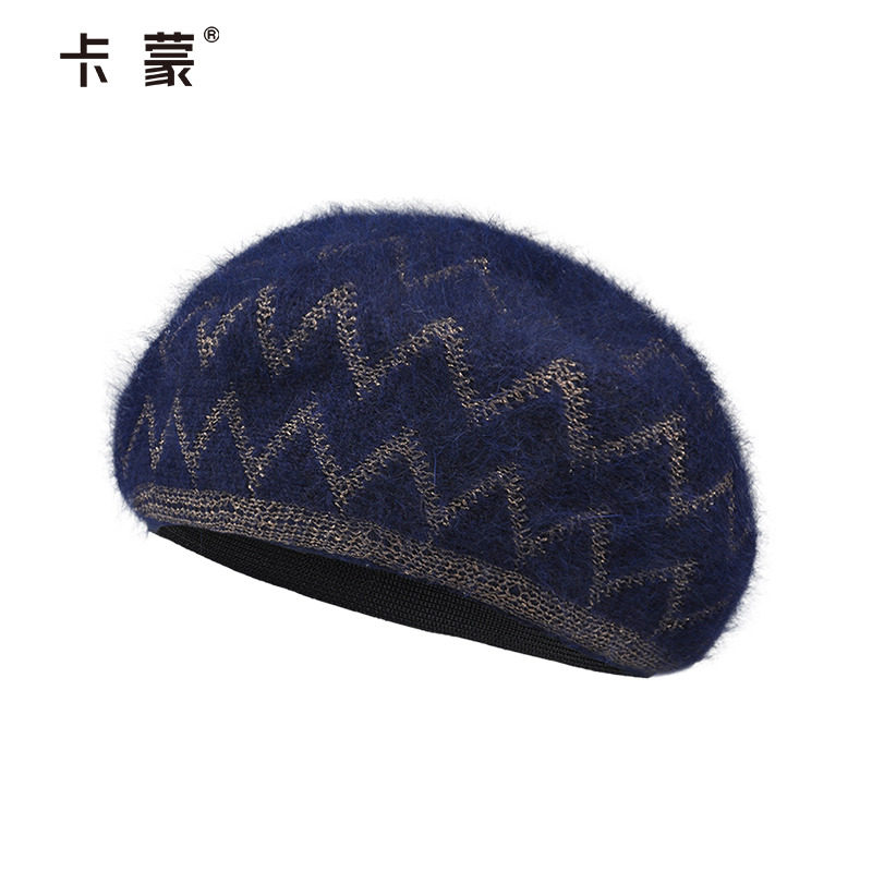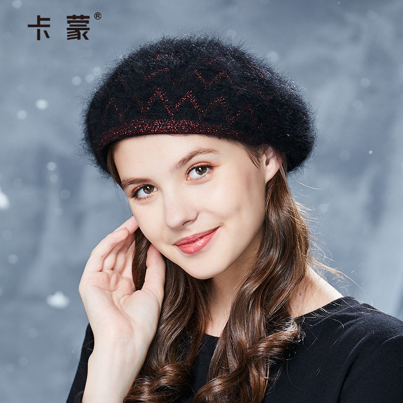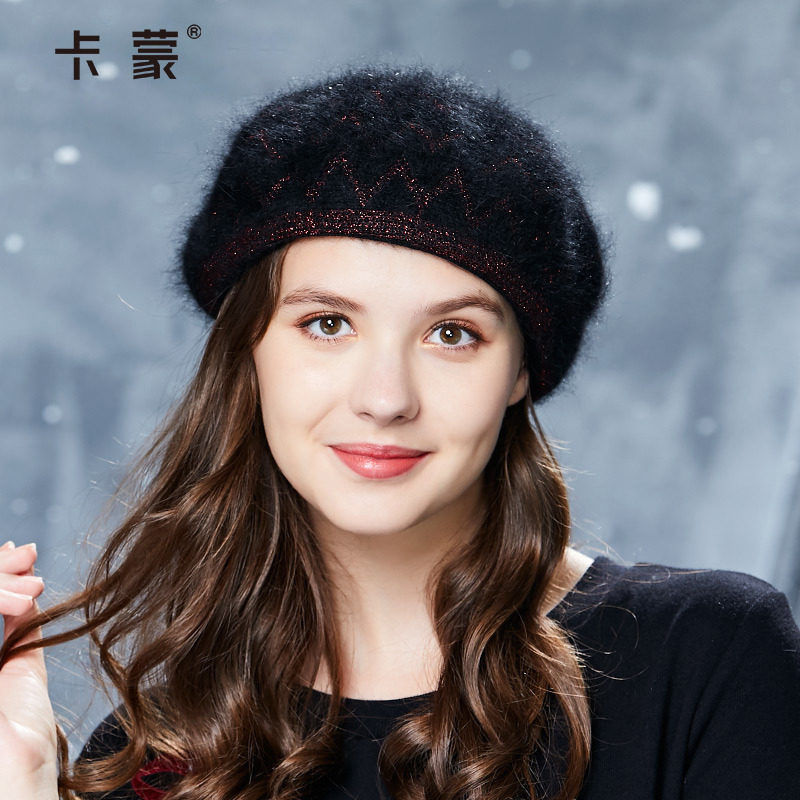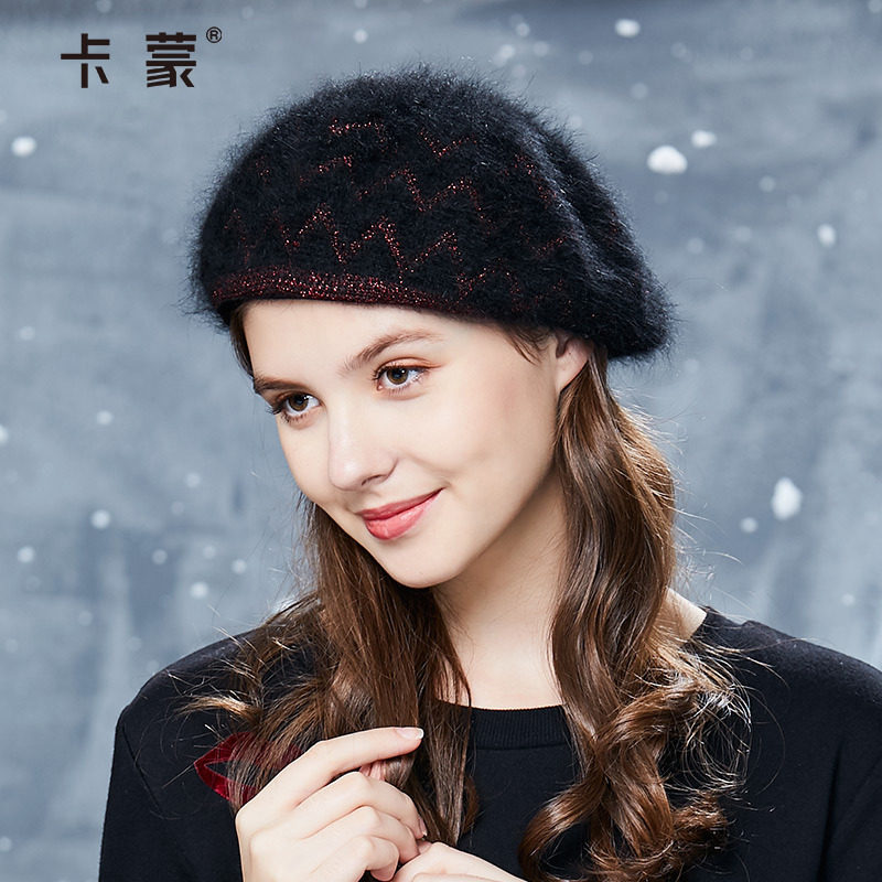 卡蒙针织兔毛贝雷帽女秋冬季韩版优雅帽子日系甜美可爱百搭南瓜帽