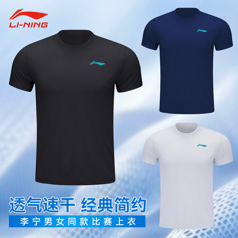 2025新款李宁羽毛球服女款男短袖运动T恤速干上衣文化衫定制印字